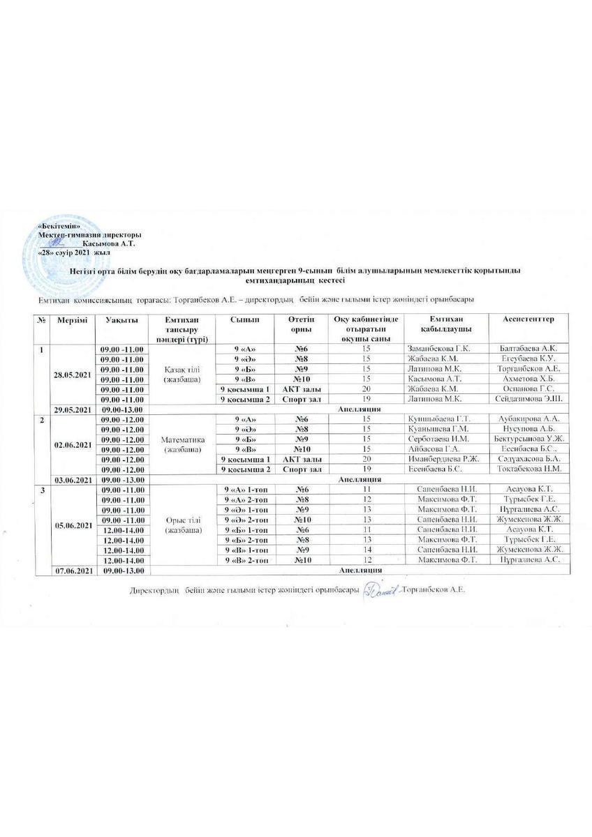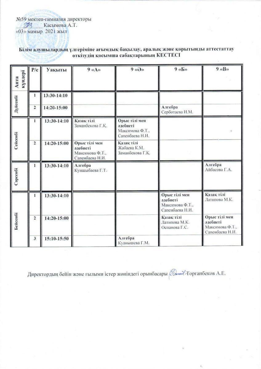 №59МГ-Қорытынды емтихан-2021 өткізу туралы