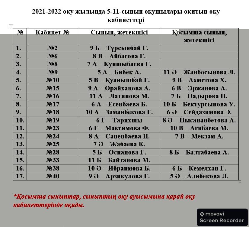 5-11 сынып оқушылары оқитын сынып кабинеттері