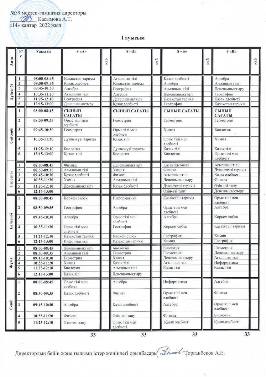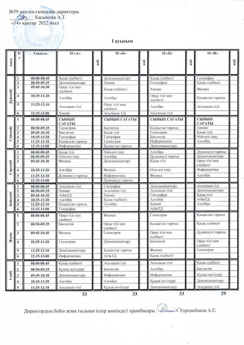 САБАҚ КЕСТЕСІ І АУЫСЫМ