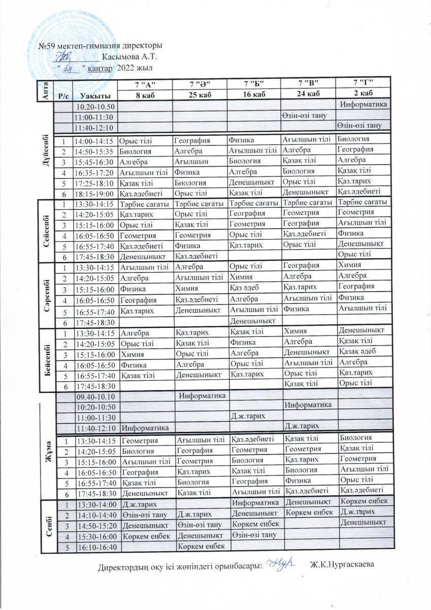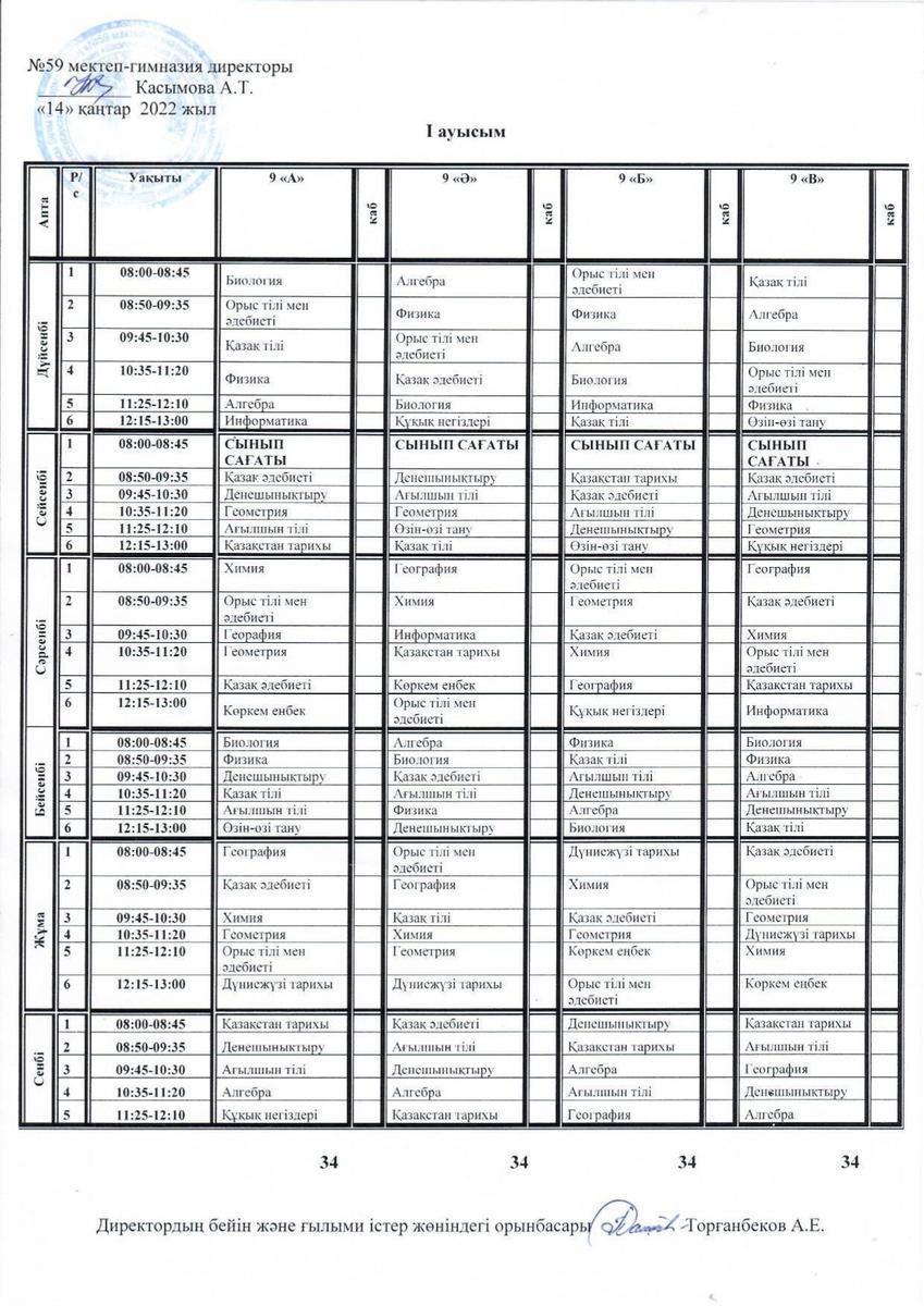 САБАҚ КЕСТЕСІ ІІ АУЫСЫМ
