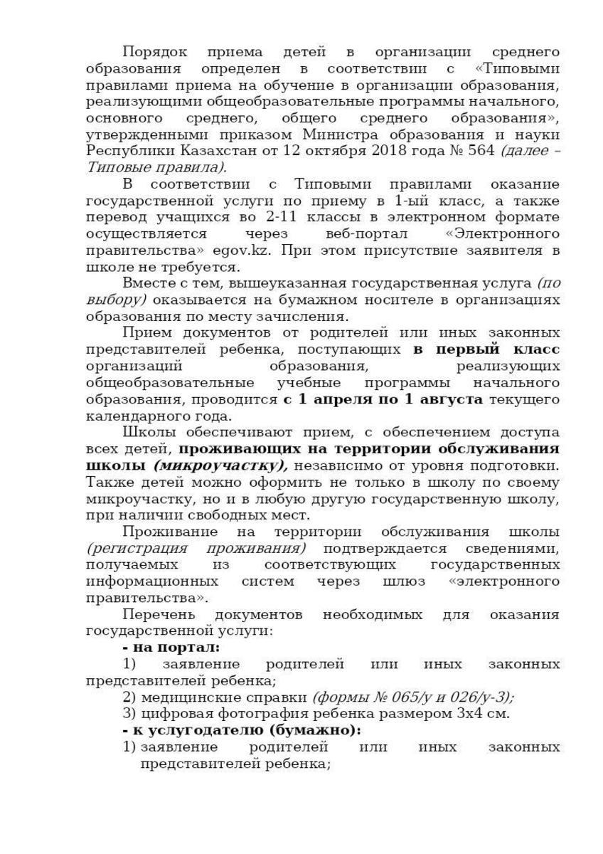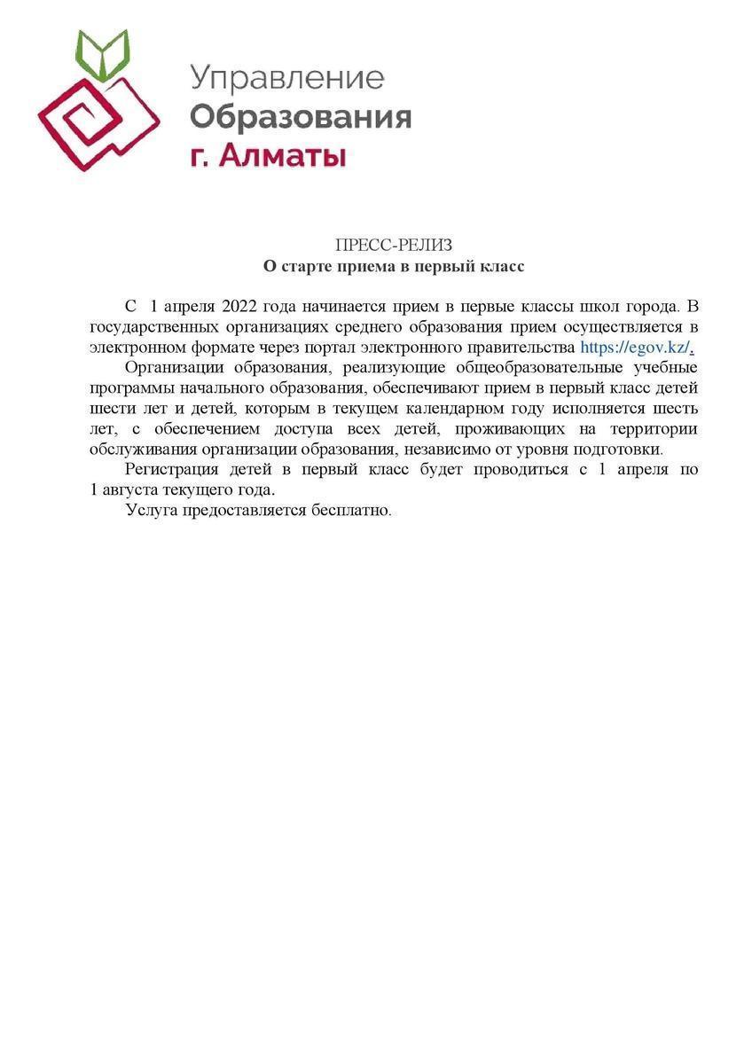 » Ақпарат! Бірінші сыныпқа қабылдаудың басталуы жайлы