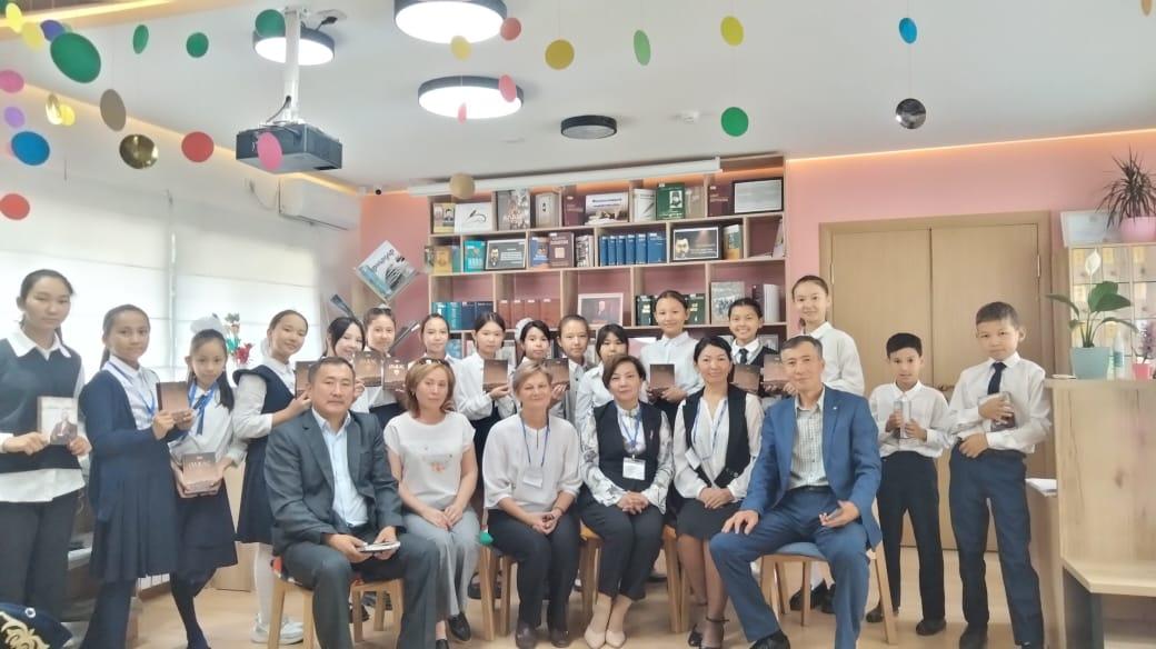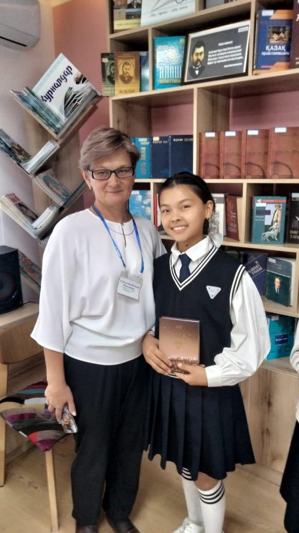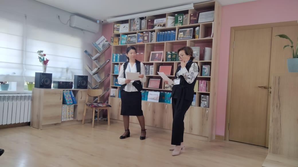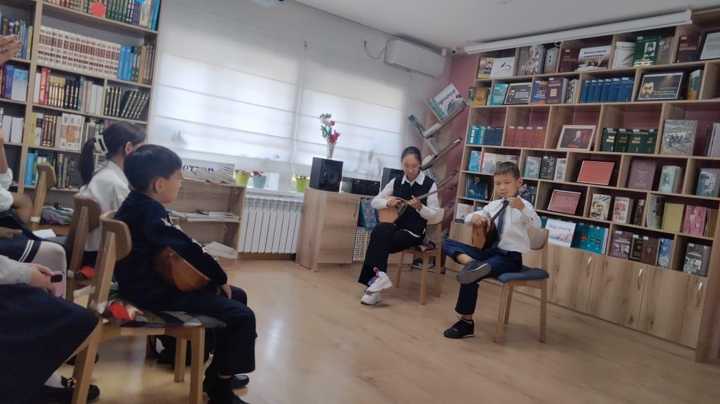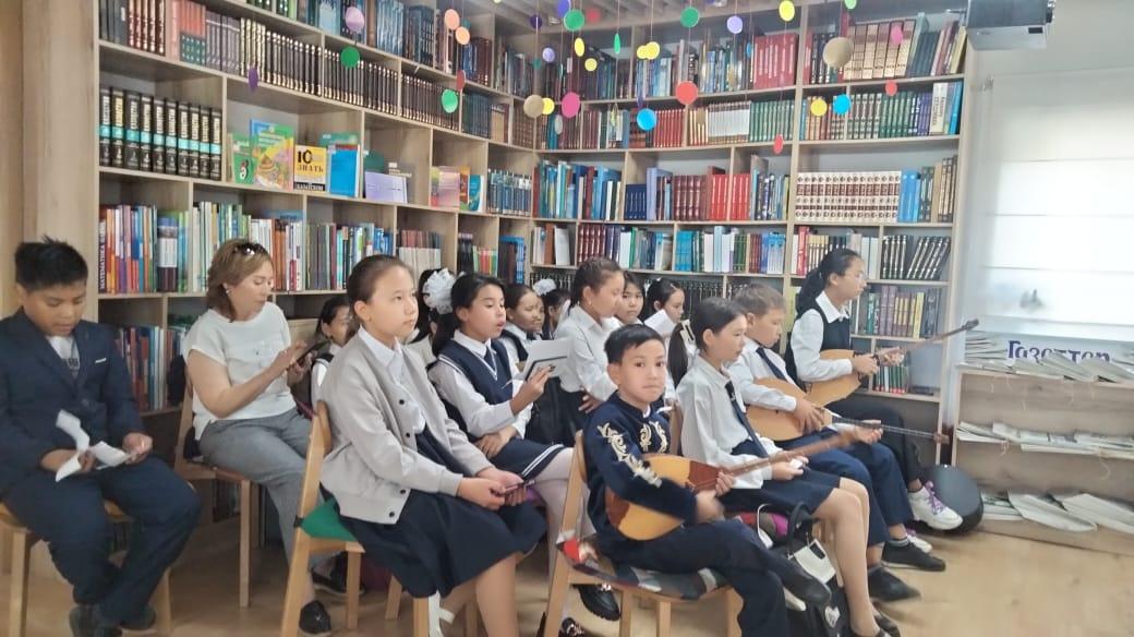Бүгін ауданымыздың №1 кітапханасында ұлы жазушы Мұхтар Әуезовтың 125 жылдығына арналған әдеби кеш ұйымдастырылды. Кешті кітапхана қызметкерлері Сюзана Уалиханқызы мен Раушан Алимжанқызы жүргізіп, заңғар жазушының күреске толы өмірбаяны мен мол шығармалары туралы баян етті. Келген қонақтарға танымдық мақсатта жазушының өмірінен ақпарат беретін бейнефильм көрсетіп, кітаптармен таныстырып, кештің мазмұнын арттырды. Біздің №59 мектеп-гимназияның 6 «В» және 6 «Г» сынып оқушылары (жетекшісі: Ерсариев М.Е.), "Жас Ұлан" ұйымының мүшелері, белсенді болып, жазушы туралы айтылған қанатты сөздер мен пікірлерді ортаға салып, білгендерімен бөлісіп, өлеңдер оқыды. Жүргізушілердің сұрақтарына жауап беріп, барынша жоғары деңгейде өтуіне атсалысты. №83 гимназияның өнерпаз оқушылары домбырамен күй тартып, кештің әсерін арттырды. Соңына таман кітапхана меңгерушісі Наталия Николаевна келген қонақтарға ризашылық сезімін білдіріп, жиі-жиі келіп тұрыңдар деген өтініш-тілегін айтып, өлеңдер оқыған, белсенді болған барлық оқушыларға кітапхана атынан сыйлықтар берді. Естелік үшін фотосуреттерге түсті.
