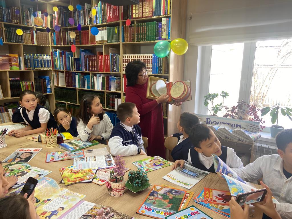 Бүгін келесі бір топ мектебіміздің 4 «Ә» сынып оқушылары (сынып жетекшісі Айжан Сағындыкова) кітапханашы Кабытаева Назира Ажибаевнамен бірге аудандық №1 кітапханаға саяхаттап қайтты. Бұл «Оқуға құштар мектеп» жобасының жалғасы ретінде жүзеге асуда. Балалар кітапханада "Менің Отаным - Қазақстан" атты тәрбие сағатына қатысып, кітаптармен, жаңа басылымдармен танысып, кітапхана қызметкерлерімен көңілді де мазмұнды сұхбат құрып, қызықтап қайтты. Бұл саяхат оқушылар үшін пайдалы болып, білім-танымын толықтырып, туған жер Отанына деген құрметін арттырды.