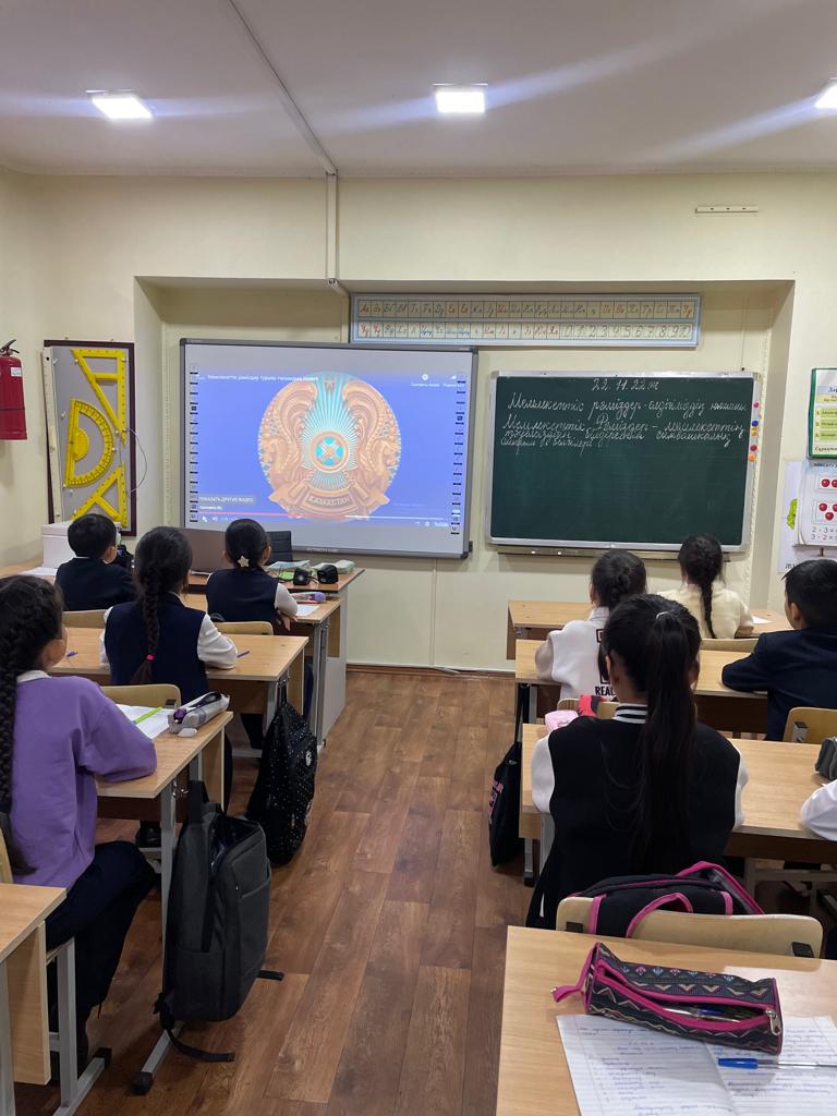 Мемлекеттік рәміздер еліміздің тәуелсіздігін білдіретін символикалық айырым белгілері бар, ерекше қадірленетін, биік мәртебеге ие айырықша нышандар. Бұл рәміздерді қадірлеу- барша азаматқа ортақ парыз. Әсіресе жас ұрпақ бойында ұлттық мәнге ие осынау символдарды құрметтеуге ерте жастан бастап қалыптастыру бүгінде аса маңызды. Бұл жүйелі жұмыс пен үлкен дайындықты қажет ететін нәрселер. Осыған орай бүгін мектебімізде 1-11 сыныптар арасында "Мемлекеттік рәміздер - еліміздің нышаны" , "Нышандарды құрметтеу - халықты құрметтеу" деген тақырыптарда сынып сағаттары өткізіліп, мемлекеттік рәміздерді қастерлеуге байланысты оқушылармен танымдық, рухани әңгімелер жүргізіліп, бейнефильмдер мен презентациялар көрсетілді. Оқушылар рухани тұрғыда байып, білімін көтерді.
