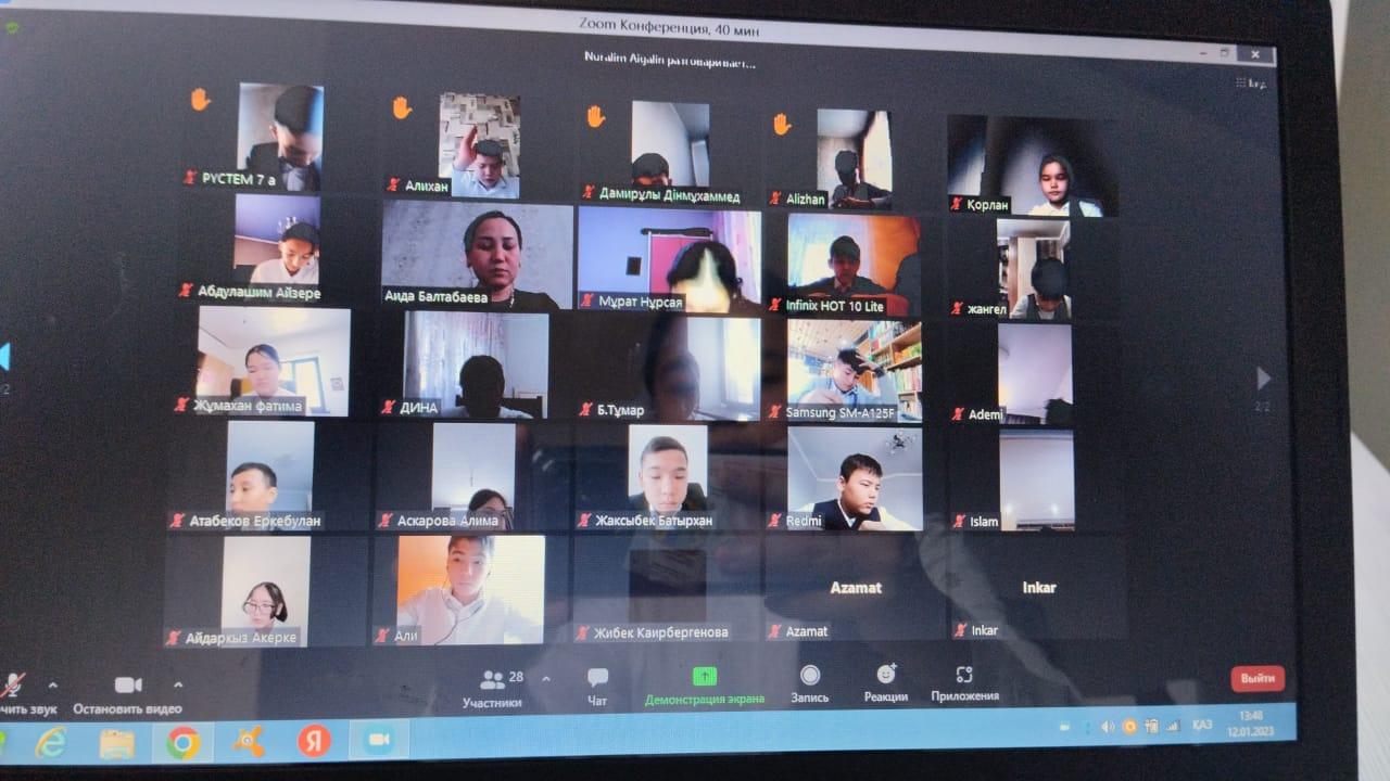 Алматы қаласының білім басқармасы ауа райының қолайсыздығына байланысты 2023 жылғы 12-13 қаңтарда 0,1-11(12) сынып оқушылары мен колледждердің I, II курс студенттері қашықтан оқыту талаптары мен ережелеріне сәйкес қашықтан оқытуға көшетінін хабарлайды. Осыған байланысты мектебіміздің оқушылары үстіміздегі аптаның бейсенбі, жұма күндері қашықтан оқитын болады. Ата-аналар мен оқушылар бұл ақпарат туралы хабарланып, компьютері мен ноутбуктері жоқтарға ноутбук беріліп, онлайн түрінде сабақтарын еш қиындықсыз жалғастыра беруге жағдай орнатылды.