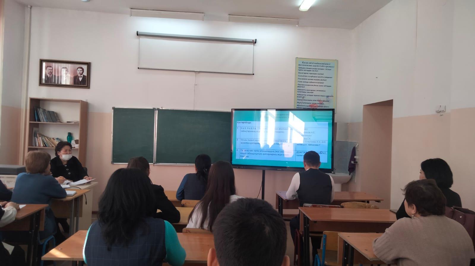 Бүгін мектебімізде Директор жанындағы №4 кеңес өтті. Кеңесте өткен жылдың желтоқсан айының қорытындысы тыңдалып, атқарылған жұмыстары талқыланды. Негізі күн тәртібінде 3 мәселе болды. Атап айтар болсақ, бірінші мәселе: 6 «А», «Б», 8 «Ә», «Б», 9 «В», 11 «Ә» сыныптарында ағылшын тілі сабақтарының оқытылу сапасын бақылау; (Баяндамашылар: ДБЖҒІЖО Торғанбеков А.Е. Ә/б жетекшісі Лебекова Г.К. екінші мәселе: 5, 6-сынып оқушыларының математикаға арналған дәптерлерінің тексерілуін бақылау; (Баяндамашылар: ДОІЖО Егеубаева К.У. Ә/б жетекшісі Айбасова Г. үшінші мәселе: Тәлімгер мен тәлім алушылардың (жас мамандар) өзара сабаққа қатысу дәптерлерінің жүргізілуін бақылау; (Баяндамашылар: ДБЖҒІЖО Торғанбеков А.Е. тәлімгерлер. Баяндамашылар атқарылған жұмыстар туралы жан-жақты баяндап, негізгі мәселелерді ортаға салды. Мектеп директоры Қасымова Айжан Тойбекқызы өз кезегінде бақылау жұмыстарын жалғастыра берудің және білім беру сапасын арттыруға күш салудың маңыздылығына тоқталып өтті.