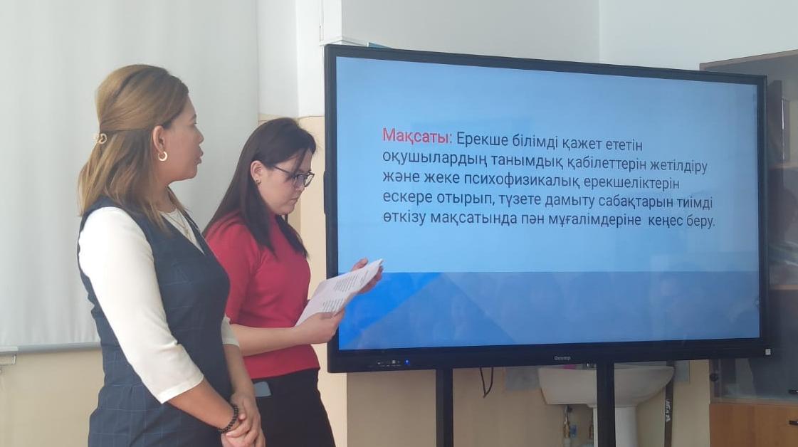 3. «ЕБҚ бар оқушымен жұмыс барысында пән мұғаліміне кеңес».Психолог: Тұрсынбай Г., Дефектолог: Куштаева А.