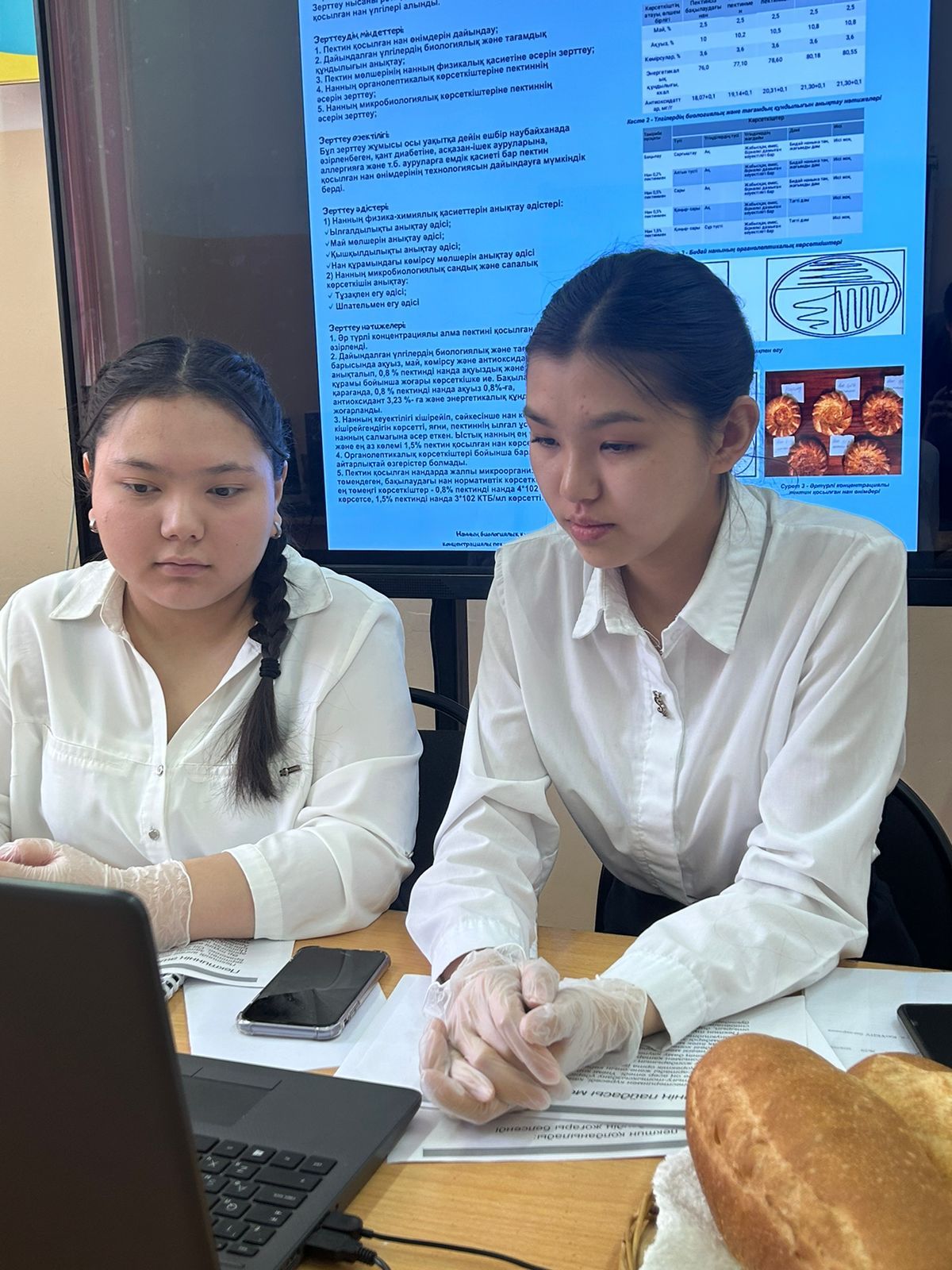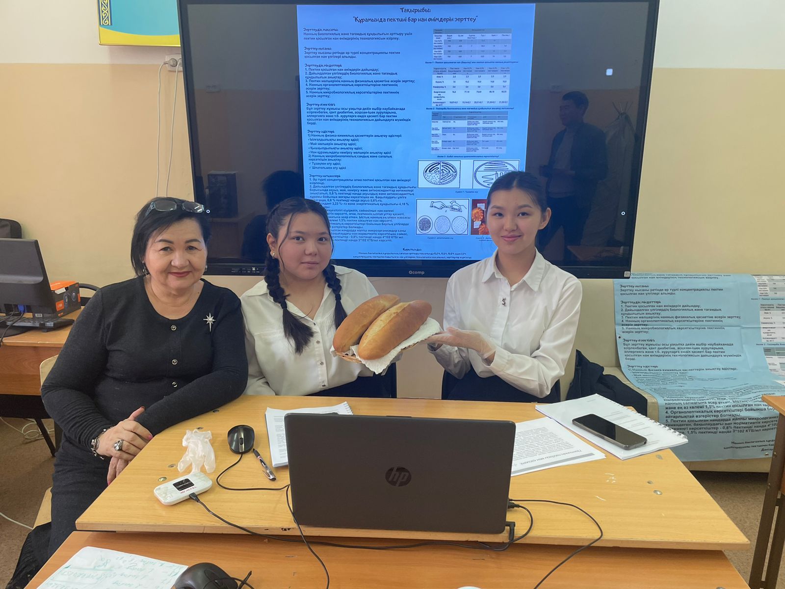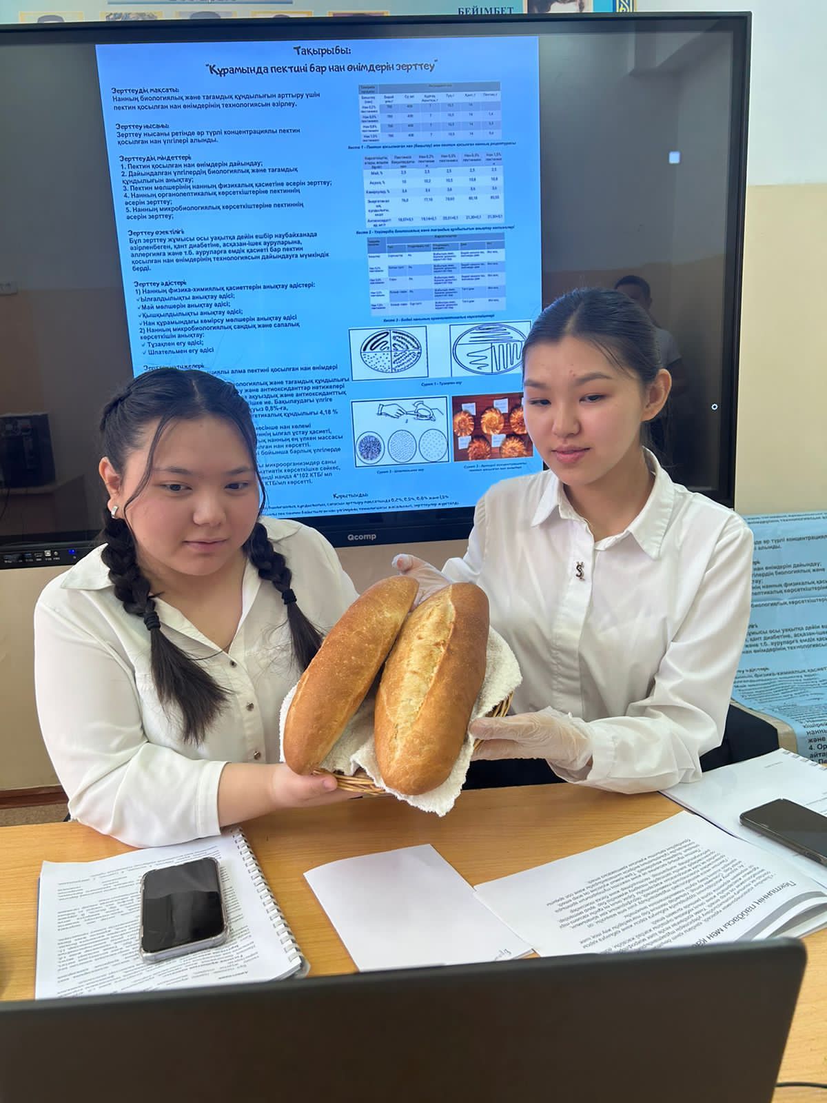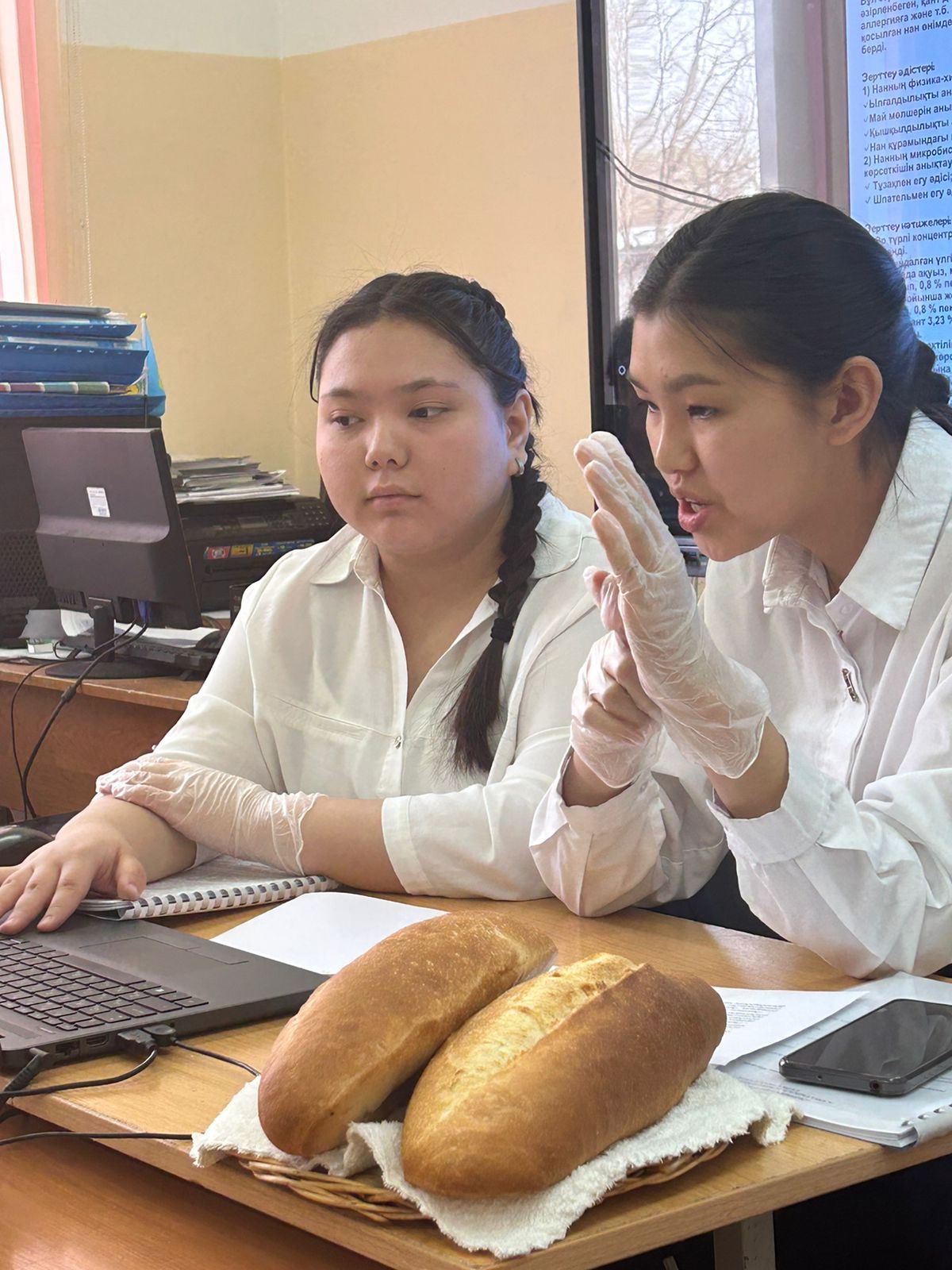 Жоба: “ҚҰРАМЫНДА ПЕКТИНІ БАР НАН ӨНІМДЕРІН ЗЕРТТЕУ” тақырыбында қорғалды. Жоба жетекшісі - биология пәні мұғалімі Ибраимова Бакыт Тасболатовна.
