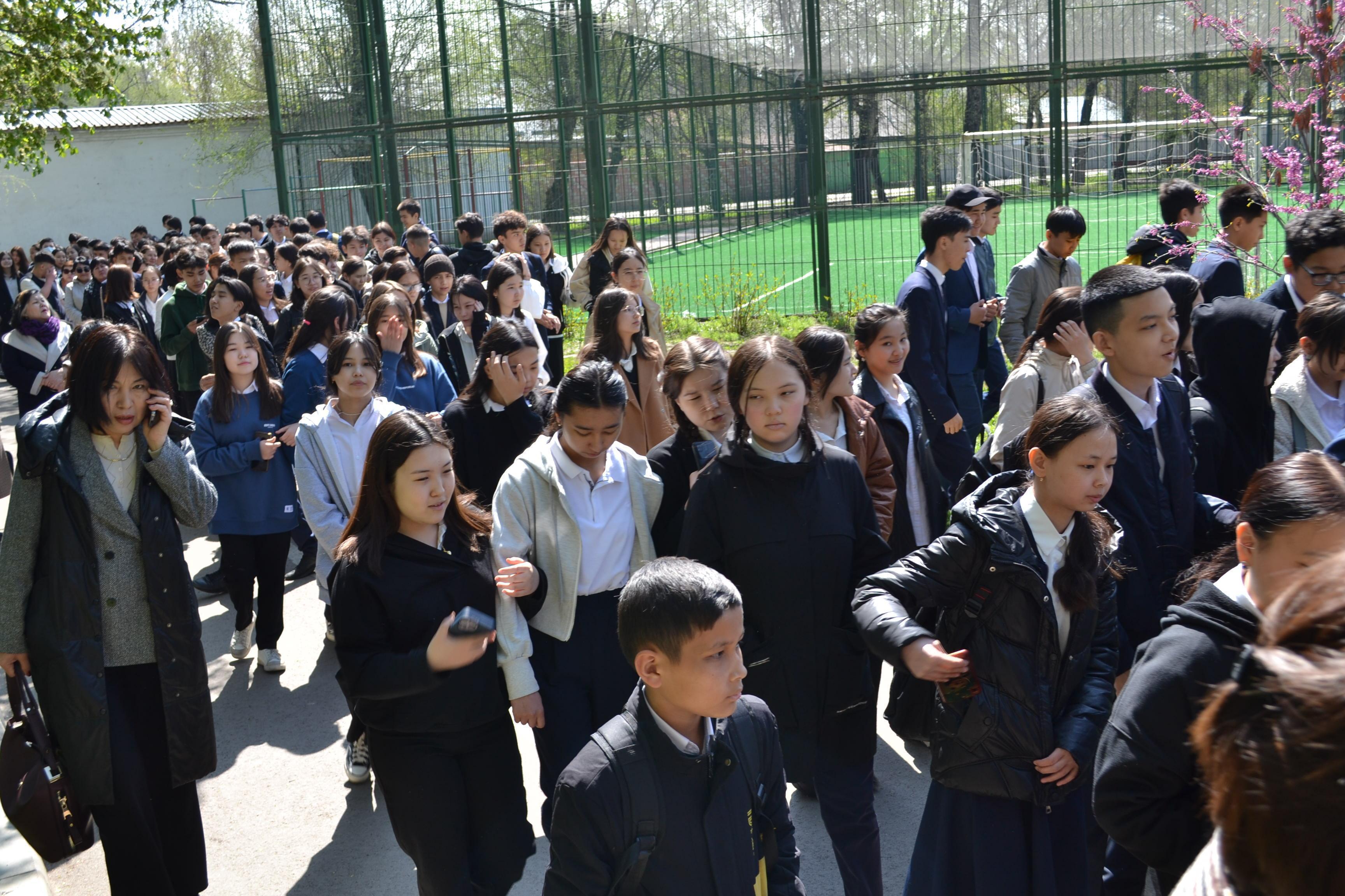 Бүгін Жалпықалалық сейсмикалық жаттығу өткізілді. Сағат 11-00-де қала бойынша дабыл қағылып, мектебіміздің барлық оқушылары мен мұғалімдері қауіпсіз аймаққа шығарылды. Аталмыш сейсмикалық жаттығулар жер сілкінісі кезінде, дейін және кейін оқушылардың дұрыс шешім қабылдап, дайындығын арттыру, эвакуациялық шараларға дағдыландыруды мақсат ететін игі іс-шара. Алматы қаласы негізінде сейсмикалық қауіпті аймақ болғандықтан мұндай жаттығулар мемлекеттік мекемелер мен мектептерде ара-тұра өткізіліп тұрады. Бүгінгі жаттығу барысында штаб бастығының орынбасары Әлімжан Дархан Мұхитұлына сынып жетекшілері есеп беріп, қанша оқушылардың қатысып отырғандығы туралы айтып берді. Мектебіміздің алғашқы әскери дайындық пәнінің мұғалімі, полковник Байсинов Асылхан сап түзеген оқушыларға бұл сейсмикалық жаттығудың мән-маңызы мен пайдасын түсіндірді. Жалпы аталмыш іс-шараға оқушыларымыз белсене қатысып, нұсқаулықтарды дер кезінде орындап, жаттығулардың сәтті өтуіне атсалысты.