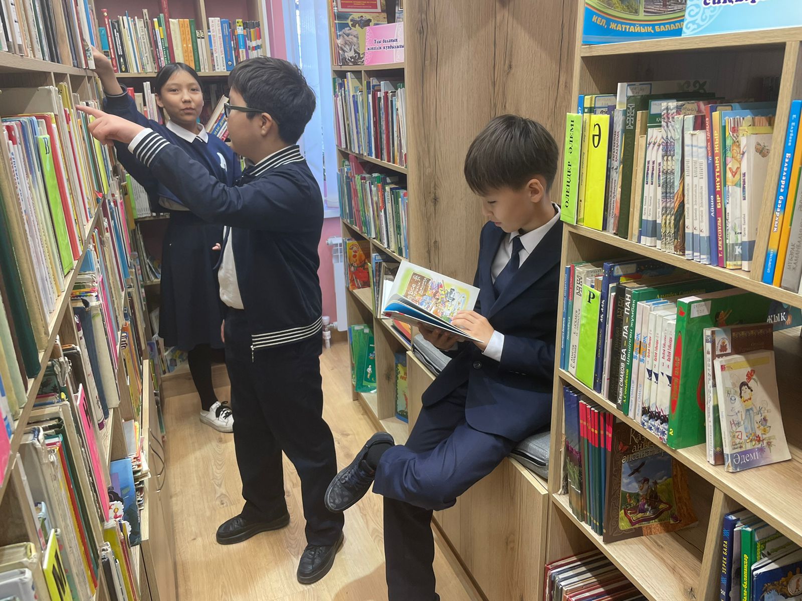 Оқушылар кітапхана залдарымен, мерейтой иелеріне арналған бұрыштармен танысып, Марат Қабанбайға арналған кітап көрмесін тамашалап, өткен сыныпта оқыған “Бауыр” әңгімесін талқылады.