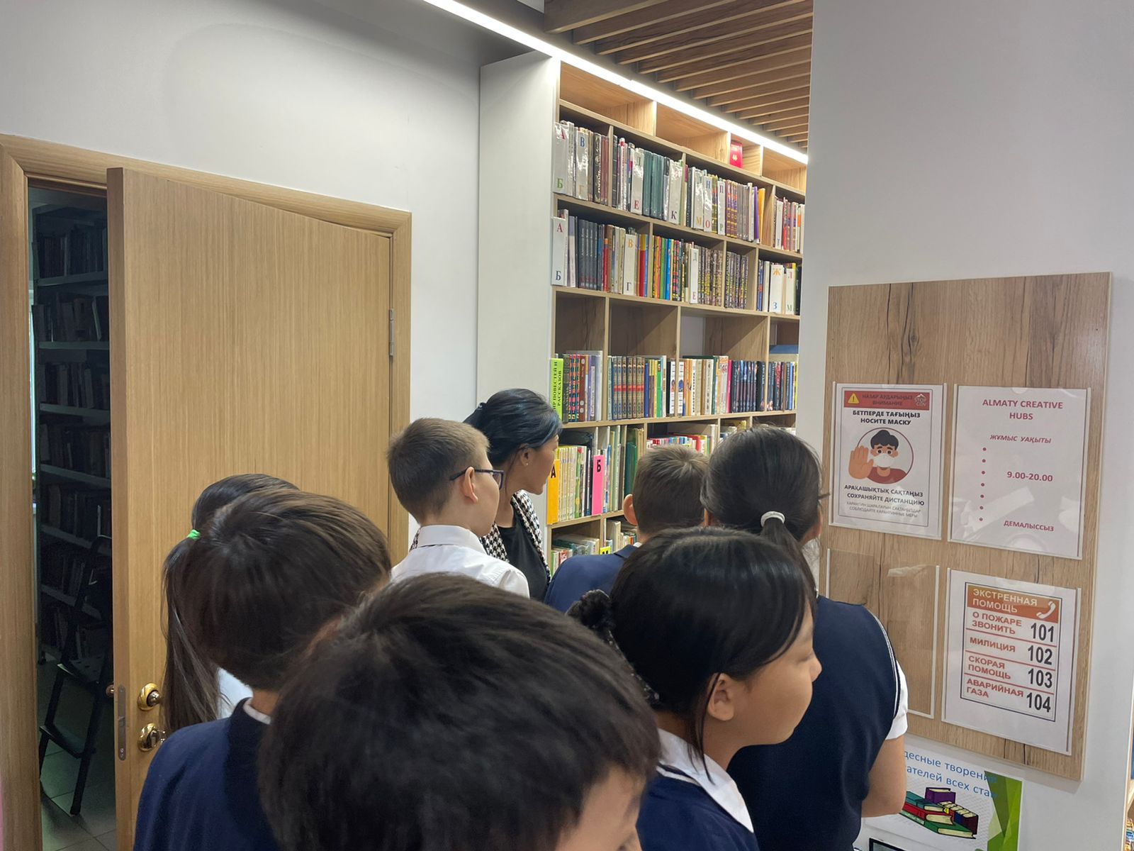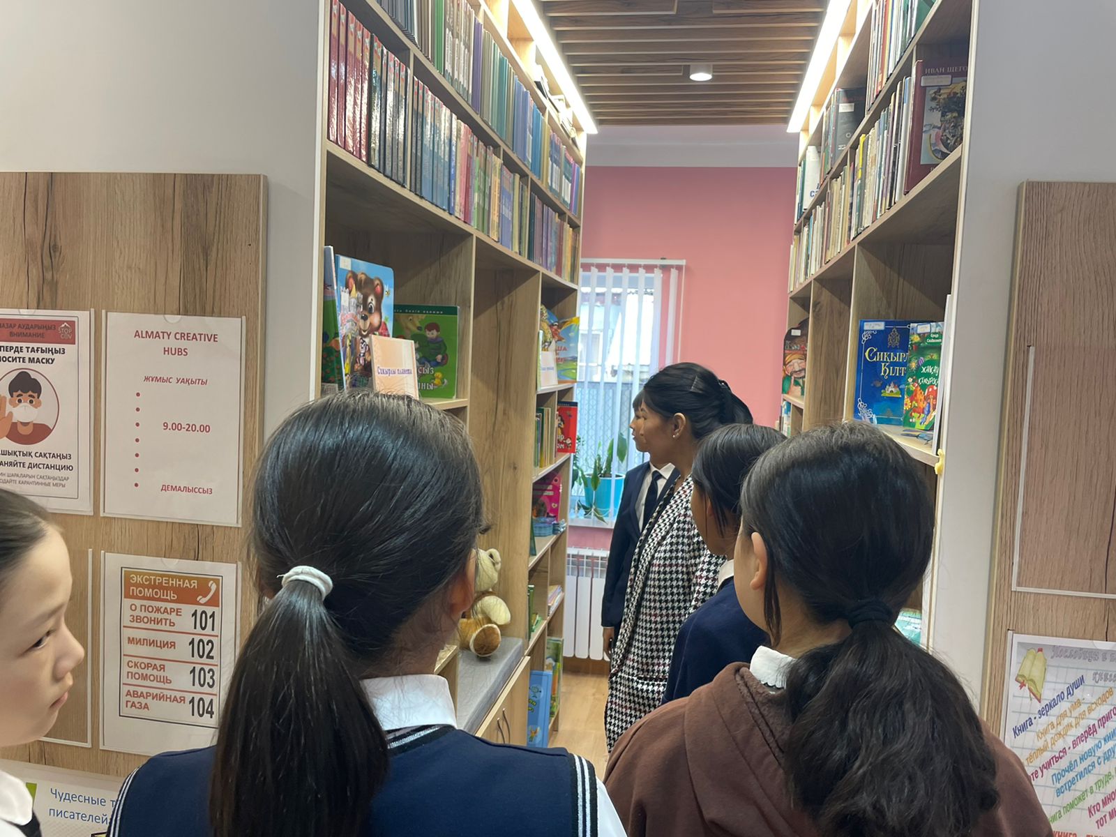 23 сәуір - дүниежүзілік кітап және авторлық құқық күніне орай, сонымен қатар 6-сыныптың “Қазақ тілі” пәнінен 4-тоқсандағы “Әлемдегі ірі кітапханалар” бөлімін пысықтау үшін, әрі кітапқа деген қызығушылығын арттыру мақсатында 6 “Ә” сынып оқушылары Түрксіб ауданында орналасқан №1 орталық балалар кітапханасында ұйымдастырылған танымдық сабаққа барып қайтты.