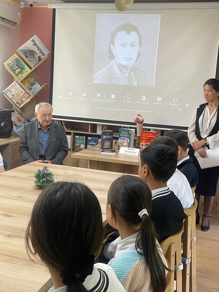 Бүгін біздің мектебіміздің 5 және 6 сынып оқушылары (сынып жетекшілері- Оспанова Гүлжан және Гульзина Бақытқызы) Түрксіб ауданындағы №1 балалар кітапханасына барып, белгілі жазушы, Қазақстан Жазушылар одағының мүшесі, Халықаралық Байқоңыр сыйлықтарының лауреаты, бұрынғы КСРО Ғылым академиясы құрамындағы Бүкілодақтық Астрономия-геодезия қоғамының толық мүшесі - Жүніс (Сахиев) Сақұрпағымен кездесіп қайтты. Кездесу барысында жазушы балалармен өз естеліктерімен бөлісіп, көптеген рухани әңгімелер айтып, жақсы, тәрбиелі бала болу үшін не істеу керектігін айтты. Сұрақтарына жауап беріп, келелі ойларын ортаға салып, кітаптарымен таныстырды. Осылайша біздің балаларымыз мәнді де мағыналы кездесудің қонағы болып, осындай кездесудің өтуіне ұйытқы болған мектеп кітапханашысы Кабытаева Назира Ажибаевнаға және кітапхана қызметкерлеріне ризашылық сезімдерін білдірді. Рухани тұрғыда аздап болса да байып, дән риза болысты.