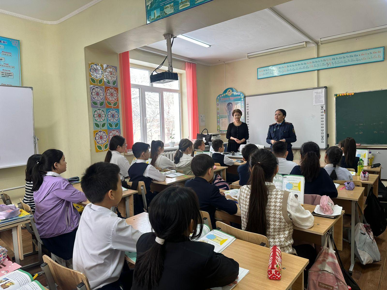 Кәмелетке толмағанадарды қылмыстық әрекетке тарту», «Жауапкершілікке тартылу« жасы» "Қоғамдық орындардағы тәртіп" , "Мектептің ішкі тәртіп ережесі"«тақырыптарында әңгіме – дәріс өткізілді.