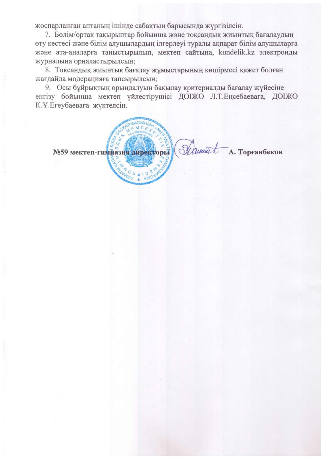 4-тоқсандық жиынтық бағалау өткізу кестесі