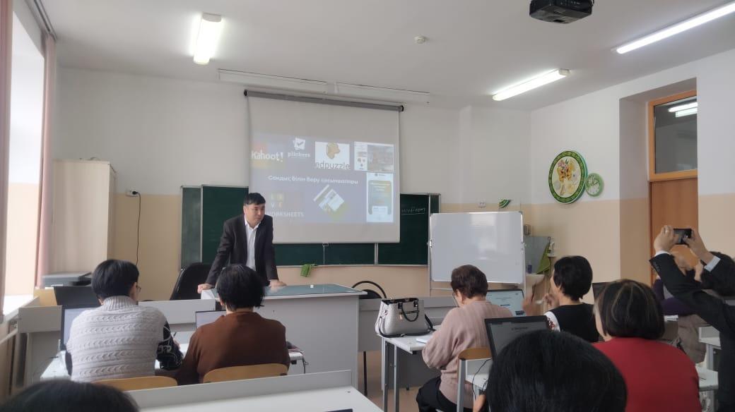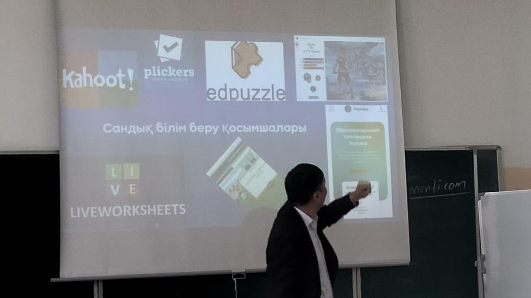 Бүгін мектебімізде физика пәнінің мұғалімі Хасен Зәрудің ұйымдастыруымен мұғалімдерге арналған шеберлік сабағы өтті. Сандық біліммен қарулану, білім ресурстары туралы ақпараттармен кеңірек танысу, оқу-оқыту ісінде тиімді пайдалану қазіргі уақытта педагог мамандар үшін аса қажетті. Ментиметр, Джойтека, Каһут секілді сандық білім беру қосымшалары мен платформалары туралы білу, оларды қалай пайдаланып, қайтіп жұмыс істеу керектігінен хабардар болу бүгінгі заманауи білім беруде аса маңызды дүниелер. Міне, осындай ақпараттарды ортаға салып, пайдаланудың жолдарын көрсетуге арналған аталмыш сабақ мұғалімдер үшін пайдалы болып, сандық технологиялар бойынша біраз білім-білігін көтеріп қайтты.