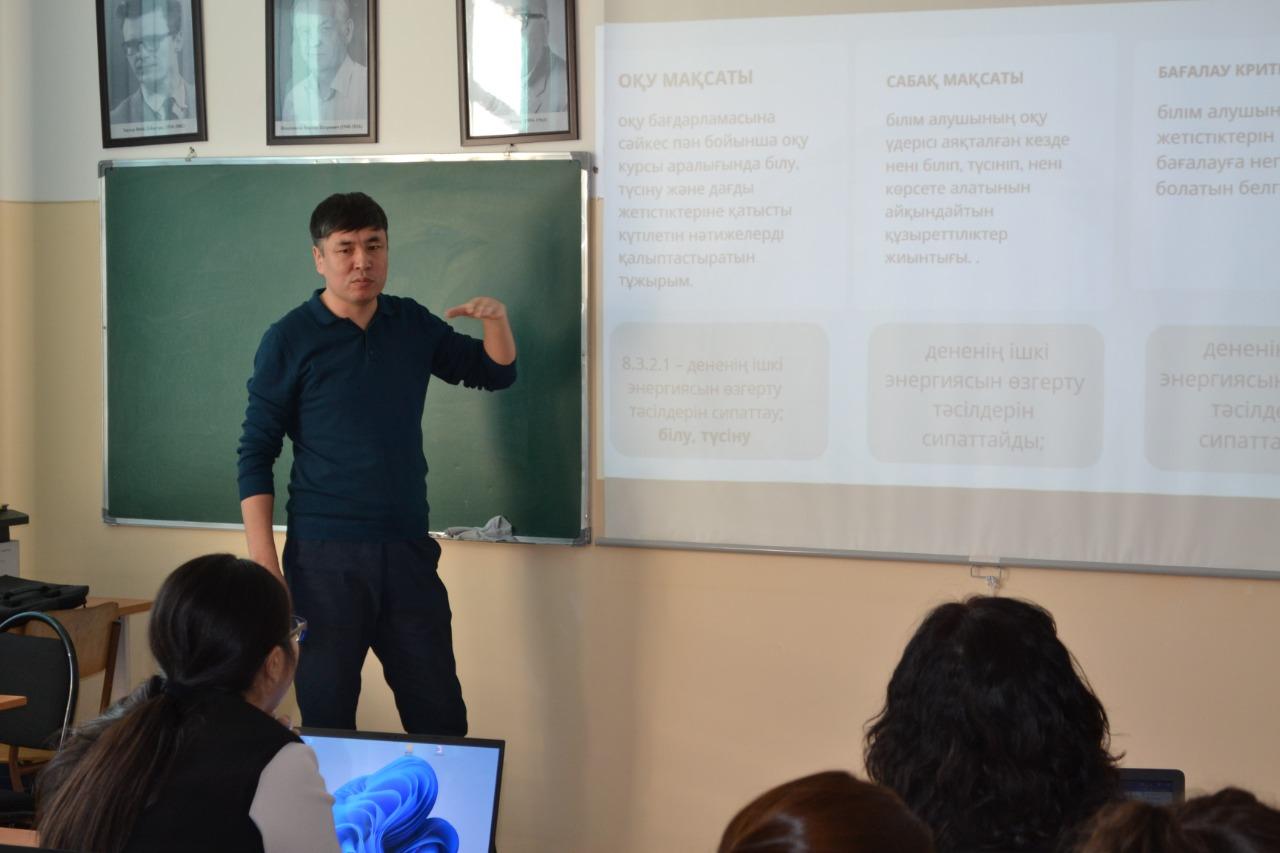 Отырыс теориялық және практикалық 2 бөлімнен тұрды. Теориялық бөлімде ҚМЖ жасаудағы негізгі талаптар мен әрекеттер түсіндірілсе, тәжірибелік бөлімде әрбір маманның өз пәні бойынша күнтізбелік-тақырыптық жоспарға сәйкес бір тақырыбына құрастырылатын ҚМЖ-дағы оқу мақсатынан сабақ мақсатын, одан бағалау критерийлерін шығару жолдары көрсетілді. Жеке-жеке кері байланыс берілді.