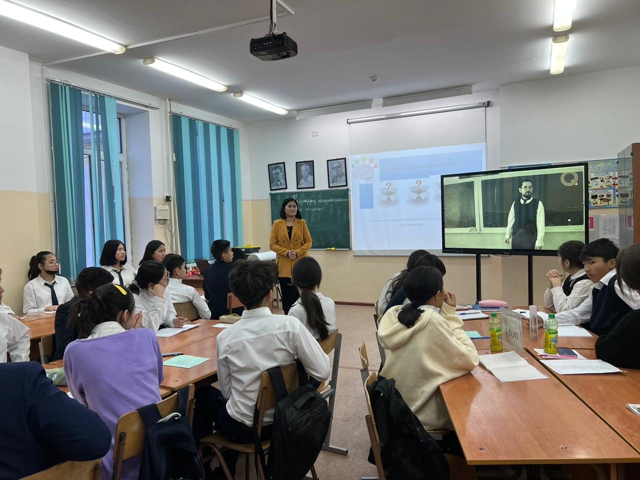 Бүгін мектебіміздің ағылшын тілі пәні мұғалімі Мекзам Әйгерім Қайратқызы 8 «В» сыныбына "Адамгершілік - рухани тәрбиенің негізі" тақырыбында ашық тәрбие сағатын өткізді. Ашық тәрбие сағаттары негізі мектебімізде жоспарға сай жиі өткізіліп, оқушыларға адамгершілік, әдептілік, рухани құндылықтар туралы айтылып отырады. Арнайы фильмдер мен бейнесюжеттер көрсетіліп, өзара талқылап, ойындар ойнатылып, тапсырмалар беріліп, барынша оқушылардың процеске қатысып отыруларын ескереді. Бүгінгі Әйгерім Қайратқызының тәрбие сағаты жоғары деңгейде өтіп, балаларға үлкен әсер қалдырды. Аталмыш тәрбие сағаттарына жауапты – директордың тәрбие ісі жөніндегі орынбасары Кыпшакова Дариха.