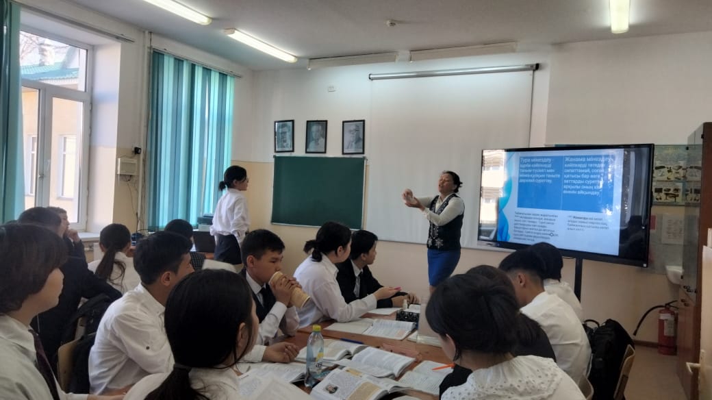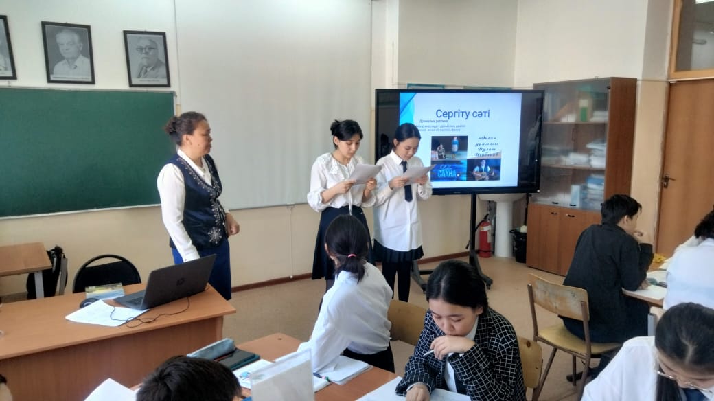 Осы аптада қазақ тілі мен әдебиеті кафедрасының онкүндігі аясында кезекті ашық сабақтар өтіп, жоспарға сай жүзеге асырылды. Дүйсенбі күні қазақ тілі мен әдебиеті пәні мұғалімі Такежанова Бақыт Ахатқызының көрнекті жазушы, әйгілі партизан Қасым Қайсеновтың «Жау тылындағы бала» повесі негізінде «Бейбіт күн салтанаты» деген тақырыпта 7 «В» сыныбында ашық сабағы өтсе, бүгін әріптестеріміз Оспанова Гүлжан Сәбитқызы мен Заманбекова Гүлбану Құдайбергенқызының ашық сабақтары өтті. Қазақ тілі пәнінен Гүлжан Сәбитқызының «Жолашар. Тоқымқағар» тақырыбы бойынша 6 «Б» сыныбына ашық сабағы өтсе, 8 «Г» сыныбына қазақ әдебиетінен Дулат Исабековтың «Әпке» драмасы тақырыбында Гүлбану Құдайбергенқызының сабағы өткізілді. Тәжірибесі көп, білім-білігі мол мұғалімдеріміздің сабақтары өте жақсы өтіп, мақсаттарына жете білді. Оқушылар сабаққа белсене қатысып, қойылған сұрақтарға жауап беріп, өздерінің сыни пікірлерін білдіріп, тақырыпты қаншалықты меңгергендіктерін көрсетіп отырды. Ашық сабақтан кейінгі болатын талқылауларда оқу ісінің меңгерушілері мен пән мұғалімдері өткен сабақтарға ой-пікірлерін айтып, сабақтарда қолданылған әдіс-тәсілдердің пайдалы тұстары сөз болып, мән-маңызы талқыланды. Тиісті нұсқаулықтар берілді. Жалпы қазақ тілі мен әдебиеті кафедрасының онкүндігі аясындағы іс-шаралар өте жоғары деңгейде өтіп, мұғалімдер мен оқушылар белсене қатысып, жоспарға сай жүзеге асырылып келеді.