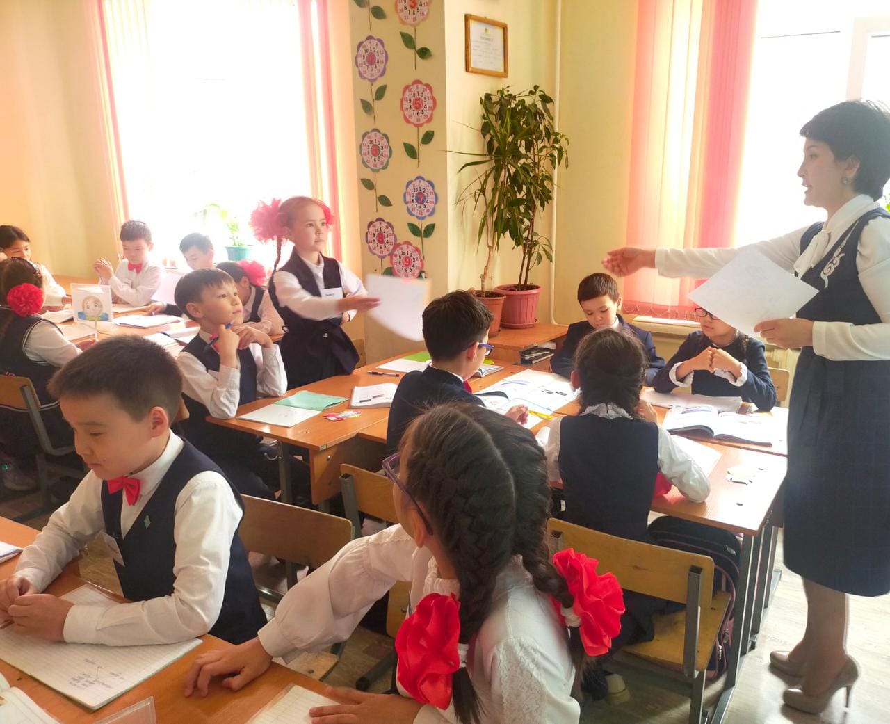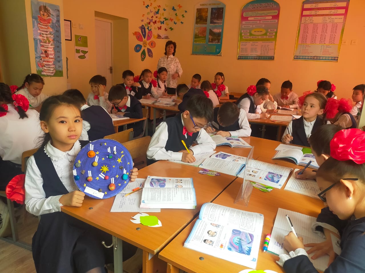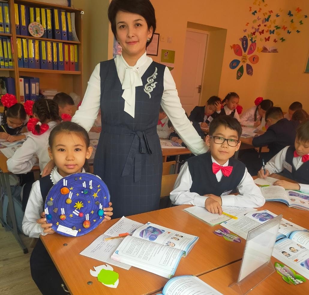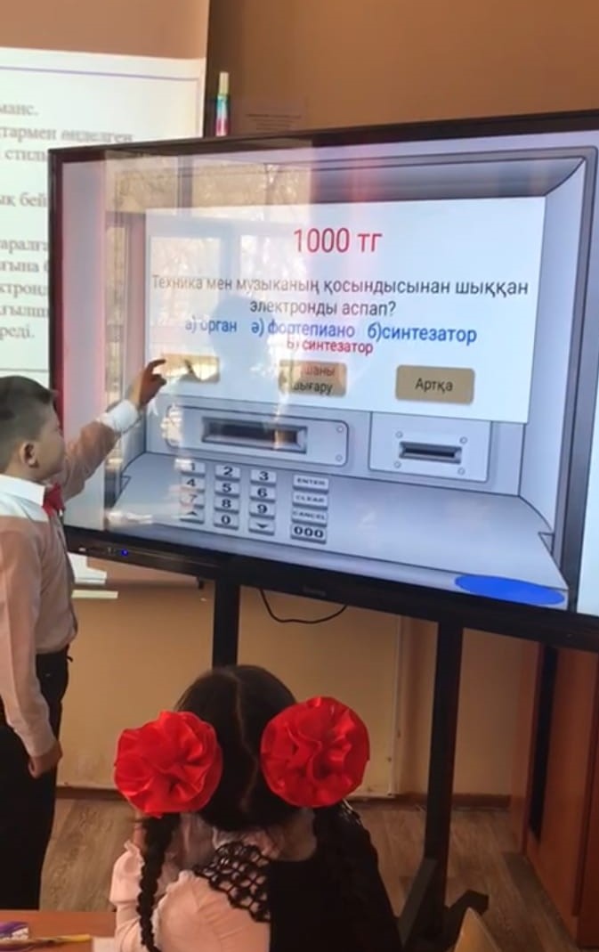 Бүгін бастауыш мектептегі 4 «Б» сыныбына «Ғарыш әуені» тақырыбында ашық сабақ өтті. Эстетикалық пәндер бірлестігінің онкүндігі аясында ұйымдастырылып жатқан бұл сабақты музыка пәнінің мұғалімі Алибекова Ләйлім апай өткізіп, балаларға музыканың құдіреті, олардың түрлері туралы айтып, барынша қызықты етіп жүргізіп отырды. Оқушылар классикалық музыканың не екенін, поп музыка мен рок музыкалардың айырмашылықтары неде екенін біліп, білімдерін толықтырып алды. Сабақ барысында қолданылған әдіс-тәсілдер, әсіресе «Банкомат» әдісі балаларға ұнап, қол көтеріп, «Мен айтайыншы!», «Тақтаға мен шығайыншы!» дегендей белсенділіктерін барынша көрсетіп отырды. Нәтижесінде сабақ жақсы өтіп, қолданылған әдіс-тәсілдер ұтымды болып, қатысып отырған мұғалімдердің де, оқушылардың да көңілдерінен шықты.