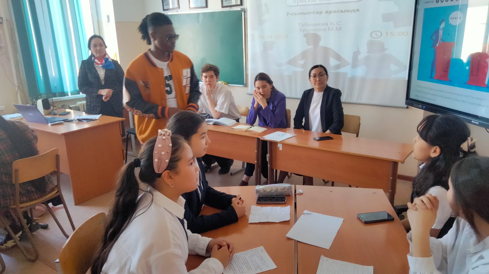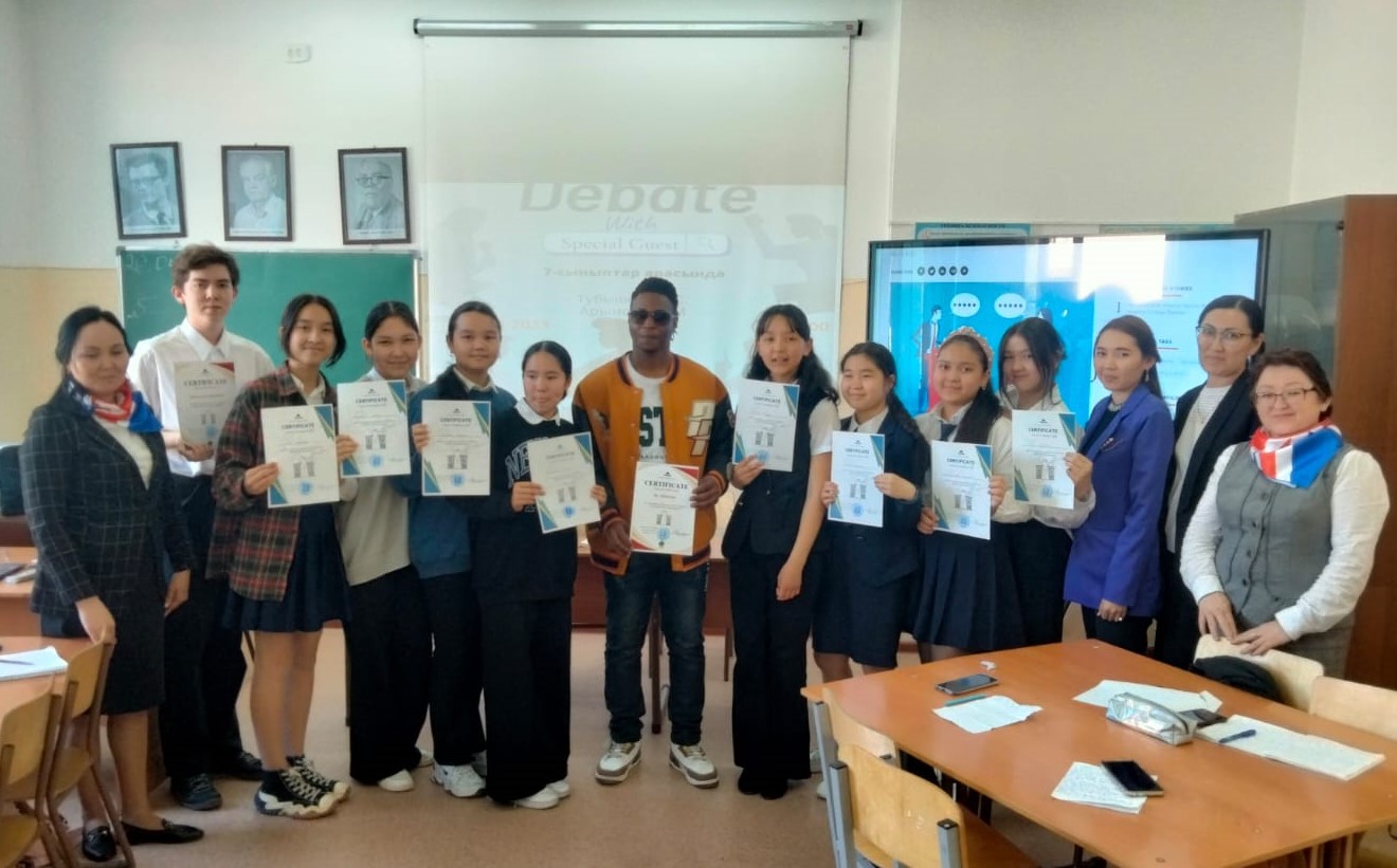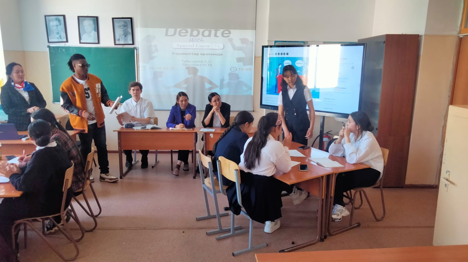 Бүгін мектебіміздің 7-сыныптары арасында «Бұқаралық ақпарат» тақырыбы бойынша пікірталас ойыны ұйымдастырылды. Оқушылардың ой-өрісін дамытып, іздендіруді, сондай-ақ мәдениеттілікке тәрбиелеуді мақсат ететін аталмыш іс-шараға арнайы қонақ ретінде Мистер Метью келіп, сайысты жүргізіп отырды. Дебат бірі- жақтаушы, бірі- даттаушы болып екі топқа бөлініп, толықтай ағылшын тілінде жүргізілді. Пікірсайыс барысында оқушылар тілді жақсы меңгергендіктерін көрсетіп, өздерінің пікірлері мен дәлелдерін толықтай ағылшын тілінде жеткізіп, белсенділік танытып отырды. Мистер Метью арасында сұрақтар қойып, ойын барысын қадағалап жатты. Іс-шараға қатысып отырған мұғалімдер ағылшын тілінде мүдірмей ой-пікірлерін жақсы айтып отырған сайыскерлерді қолдап, қошеметтеп те жатты. Тартысты өткен сайыстың қорытынды бөлімінде жюри мүшесі, қалалық дебат сайыстарының жеңімпазы, 10-сынып оқушысы Батырхан Нариманов екі жақтың пікірлерін қорытындылап, артық-кем тұстарын айтып, бағасын берді. Осылайша ерекше форматта өткен пікірсайыс өз мәресіне жетіп, қатысқан оқушылар грамоталармен марапатталды.