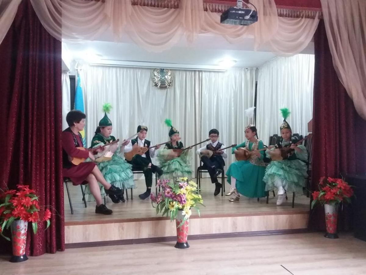 Эстетика бірлестігінің онкүндігінің ашылуы салтанатынан көрініс. Оқушылардың шығармашылық жұмысынан көрініс