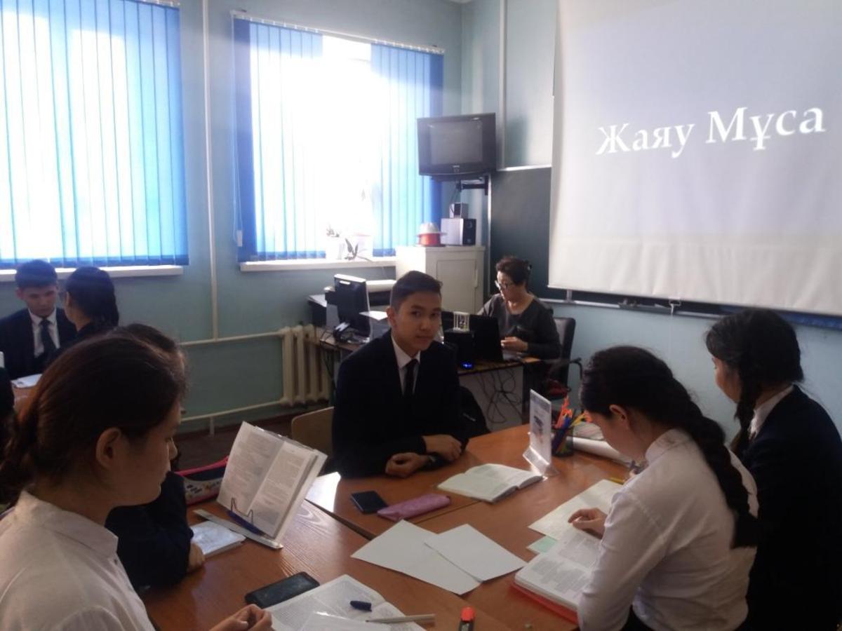 25 апрель 2019 0 1 2 3 4 5 Қазақ тілі мен әдебиеті пәні мұғалімі Жабаева К.М. 10 "А" сыныбымен қазақ әдебиеті пәнінен "Жаяу Мұса" тақырыбында ашық сабақ өткізілді.