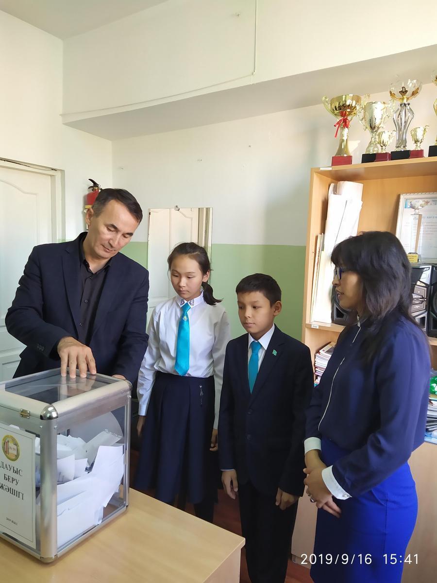59 мектеп-гимназия » Біз туралы » Іс-шаралар » Түрксіб ауданы №59 мектеп-гимназияда өзін-өзі басқару ұйымының президентін сайлауы өткізіліп,соңынан сайлау қортындысы оқушылар және ұстаздар қатыстырылуымен анықталды.Ең көп дауыс жинап, 9 сынып оқушысы Бисенбаев Мирас мектеп президентігіне сайланды