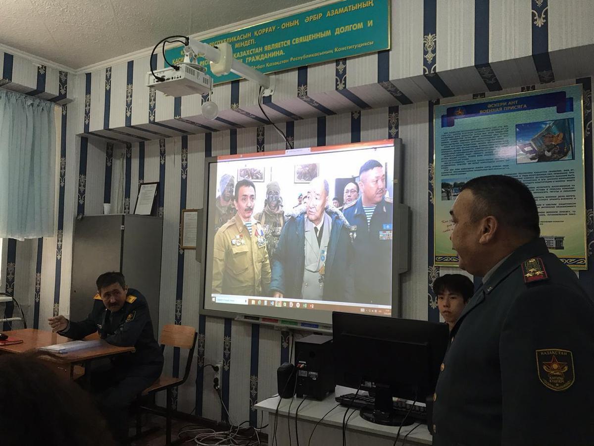 59 мектеп-гимназия » Біз туралы » Іс-шаралар » Түрксіб ауданы ардагерлер кеңесінің төрағасы Д.Б.Кодабаевпен "Адал ұрпақ" ұйымының мүшелері кездесіп, "Ерлік " сабағын 10 "Ә" сыныбымен өткізді. АӘД мұғалімі Байсинов А.