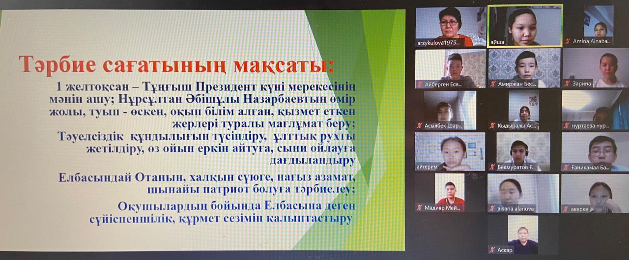 ҚР-ның Тұңғыш президенті күнін мерекелеуді ұйымдастыру бойынша іс-шаралар жоспарына сәйкес өткізілген "Елін сүйген елі сүйген-Елбасы" тақырыбындағы сынып сағаттары.