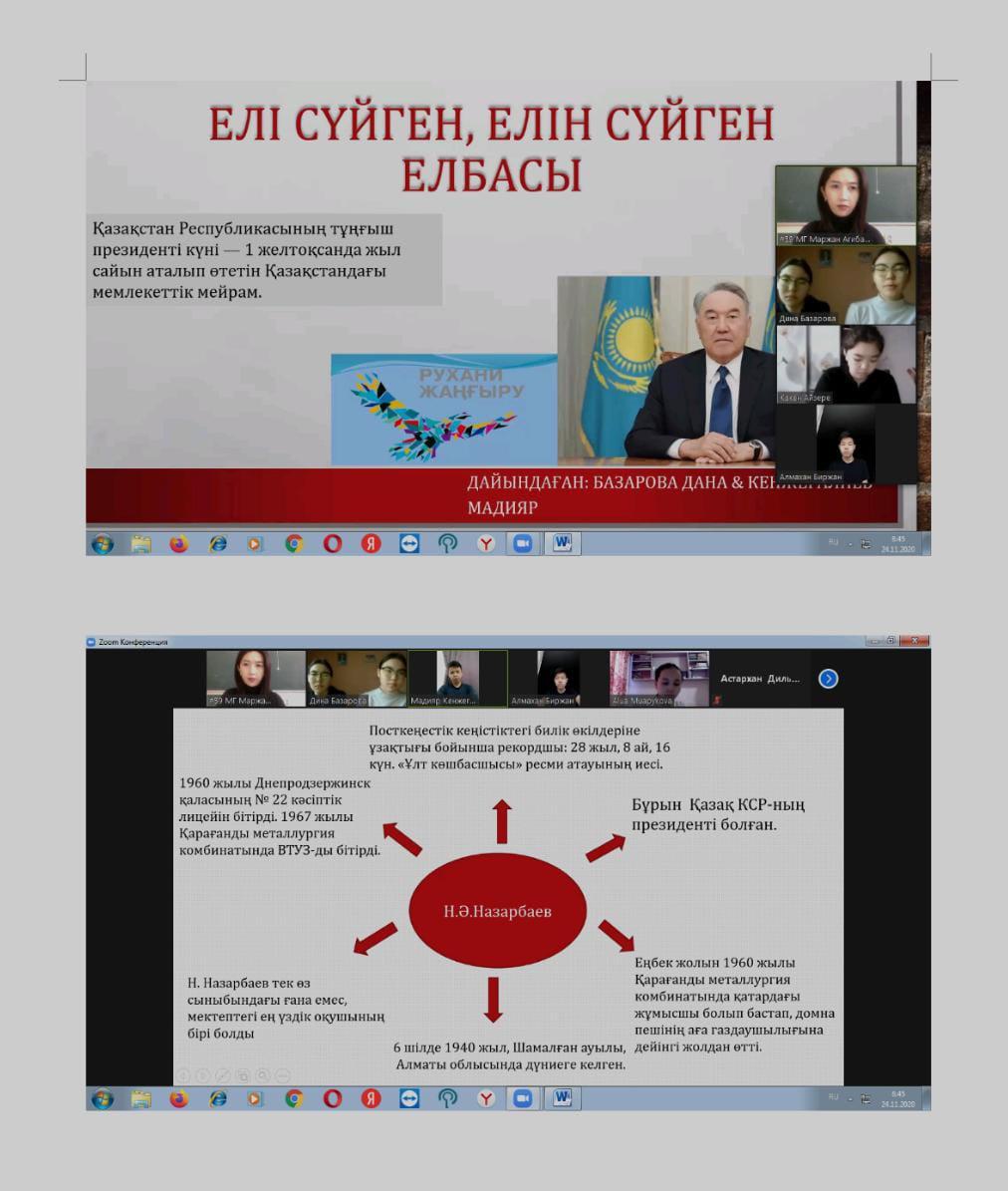 59 мектеп-гимназия » Біз туралы » Іс-шаралар » ҚР-ның Тұңғыш президенті күнін мерекелеуді ұйымдастыру бойынша іс-шаралар жоспарына сәйкес өткізілген "Елін сүйген елі сүйген-Елбасы" тақырыбындағы сынып сағаттары.