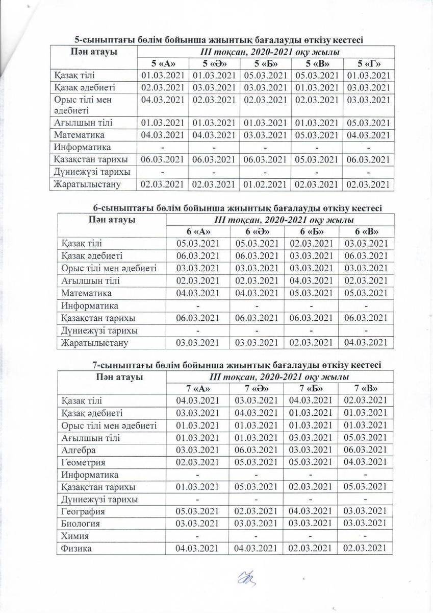 01 март 2021 0 1 2 3 4 5 2-11- сыныптарда бөлім бойынша жиынтық бағалау өткізу туралы бұйрық пен кесте.