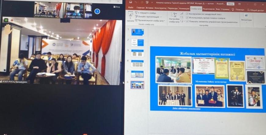 "Мектеп парламенті" өзін-өзі басқару ұйымдары мүшелерінің Республикалық онлайн басқосуында іріктеліп алған жұмыс нәтижесі қорғалды.Іріктеуден әр облыс бойынша өткен 59 мектеп-гимназиясының жұмысы үздік деп танылып іс-тәжірибесі таратылды.