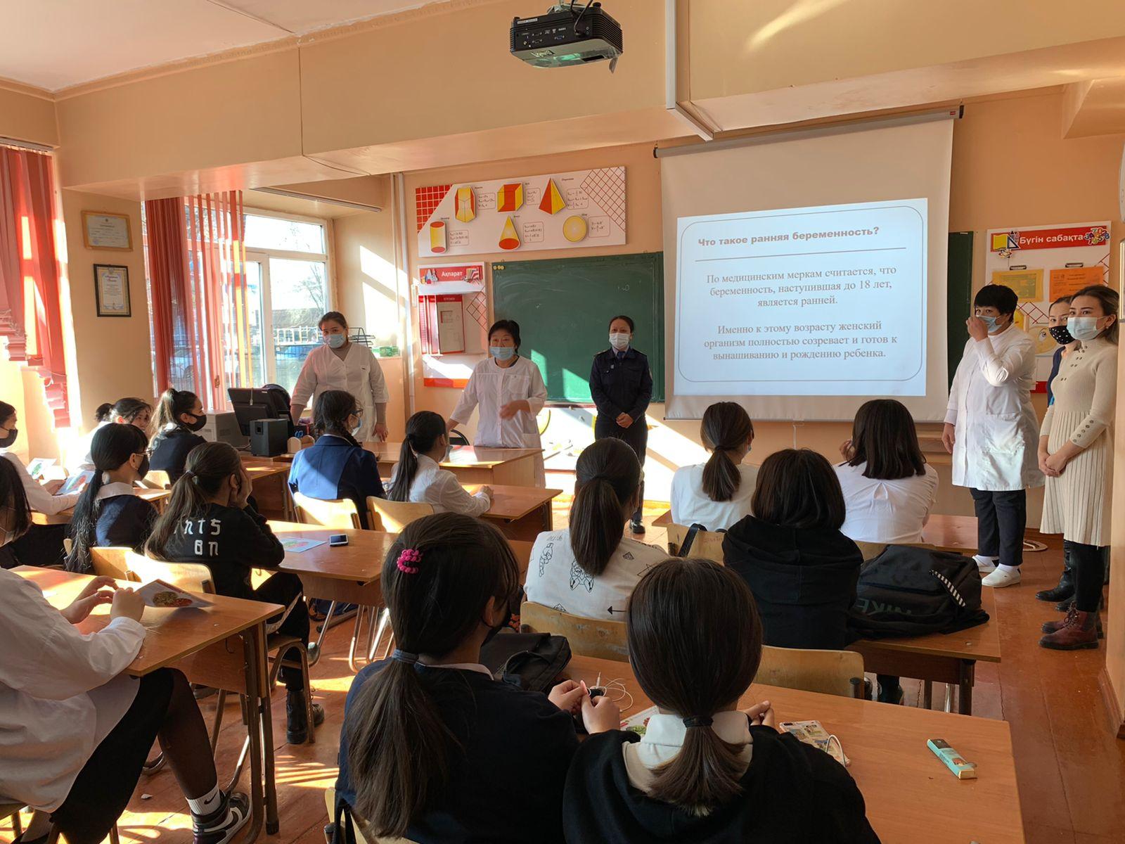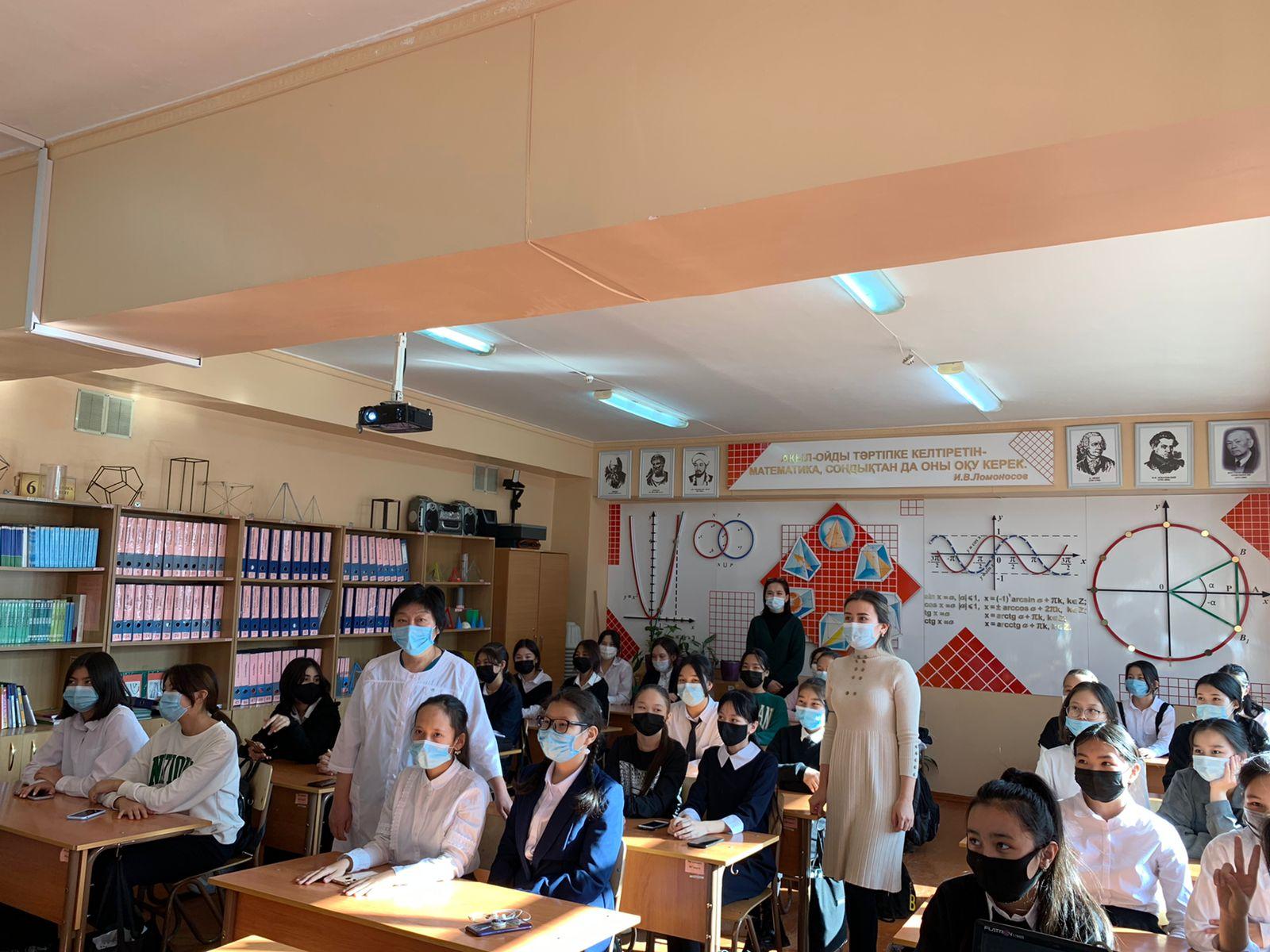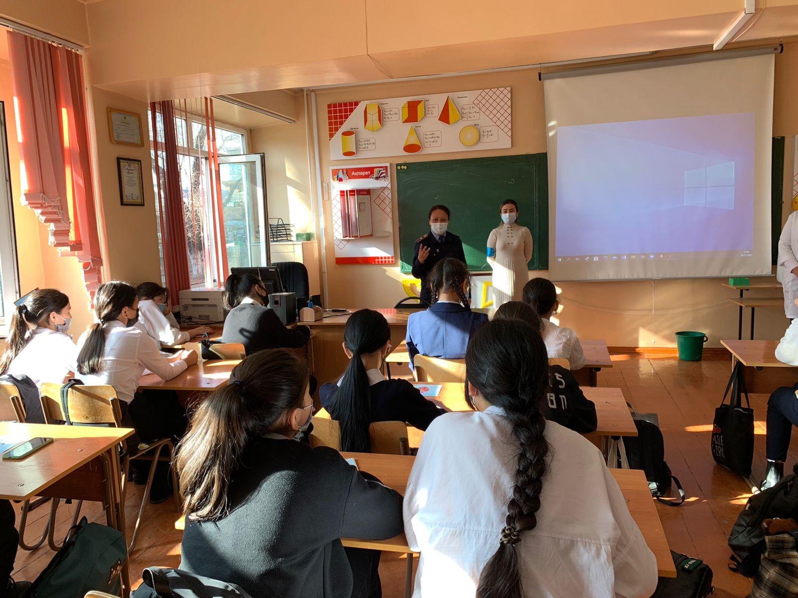 24.11.2021 күні 8-11 сынып қыздары арасында «Жыныстық тиіспеушілік» тақырыбында Түрксіб аудандық полиция бөлімшесінің майоры Қ.Н.Өмішева және №9 қалалық емханасының гинеколог-дәрігер мамандарының қатысуымен кездесу өткізілді.