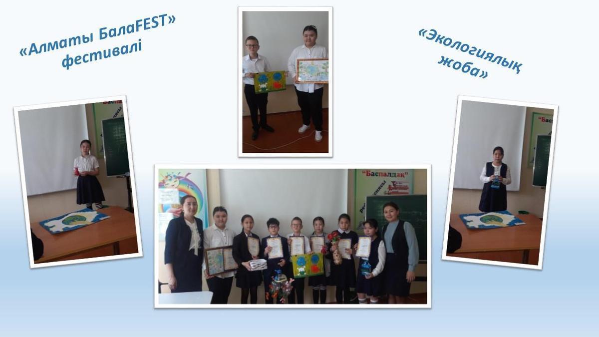 «Алматы БАЛАFEST» фестивалі аясында Түрксіб ауданы №59 мектеп-гимназиясында оқушылар арасында ұйымдастырылған Экологиялық жобасы аясында мектепішілік жарыс өткізілді. Нәтижесінде Қалибек Шынар, Жұмағали Батырғали, Серікқали Каусар есімді оқушылар жеңіске жетіп, аудандық кезеңге жолдама алды.