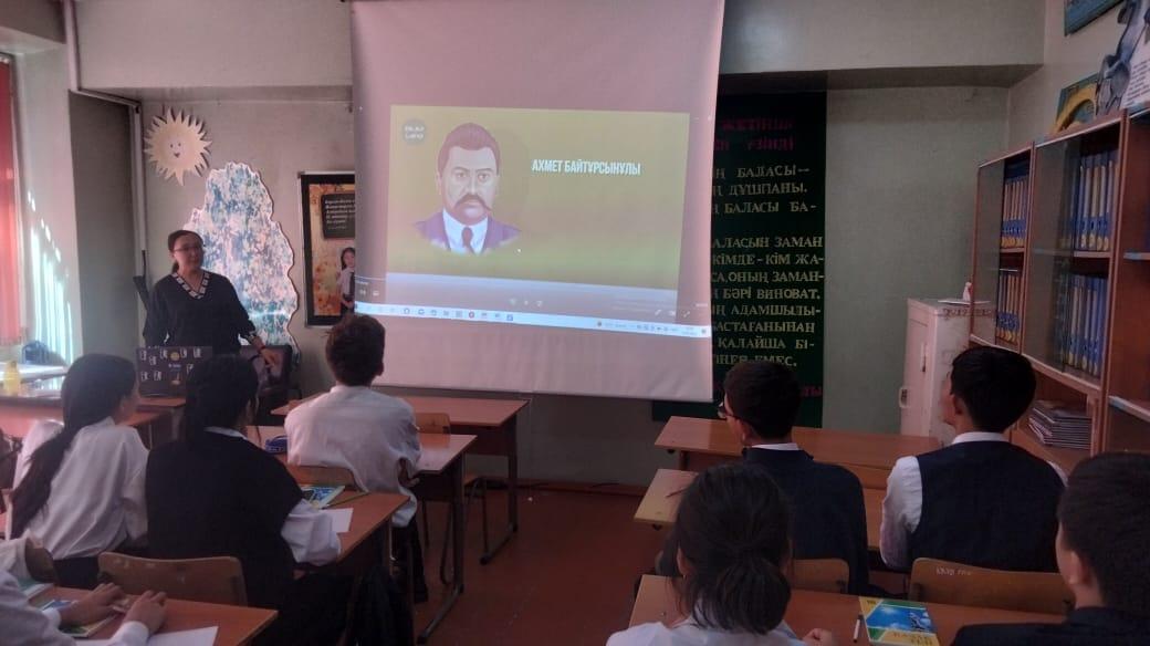 Осы аптада мектебімізде Ұлт ұстазы Ахмет Байтұрсынұлының 150 жылдығына орай ұйымдастырылған бірыңғай танымдық сабақтар өтті. Өз заманының ағысына қарсы тұра білген қайраткер, қазақтың болашағы мен халықтың мәдени-әлеуметтік болмысын көтеру үшін қызмет етіп, білім алуға және бұқараны ағартуына шақырған ұлт көсемінің күреске толы өмір жолы мен ұлттық идеялары бүгінгі жас ұрпақ үшін маңызы үлкен рухани азықтар. Ұлт ұстазы қазақ әліппесі мен қазақ тілі оқулықтарын жазып, қазақ тіліне А.С.Пушкин, М.Ю.Лермонтов, Ф.Вольтер, С.Я.Надсонның өлеңдерін аударып, кейінгі ұрпақ үшін мол мұра, таусылмас қазына қалдырды. Ә.Бөкейханов, М.Дулатовпен бірігіп, жалпыұлттық «Қазақ» газетін шығарып, көптеген мақалалар жазды. Міне, бірыңғай танымдық сабақтарда Ахаңның осы еңбектері мен өмір жолы сөз болып, кеңінен таныстырылды. Оқушылар тақырыпқа үлкен қызығушылық танытып, білімдерін ортаға салды, өз ойларымен бөлісті.