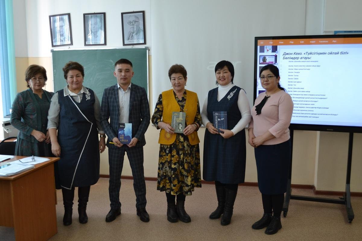 Бүгін «Кітап әуесқойы» жобасы аясында кезекті оқырмандар конференциясы өтіп, Джон Кехоның «Түйсігіңмен ойлай біл!» кітабы талқыға түсті. Әлемге танымал автордың кең оқылымда жүрген еңбегі бір апта бойы оқылып, бүгін сол кітап төңірегінде тренинг өтіп, пікірлер, ойлар ортаға салынды. Алдымен оқырмандардан тест алынып, ең жоғары нәтиже алған мұғалімдерге қазақтың белгілі жазушыларының кітаптары сыйға тартылып, үздік оқырман ретінде марапатталды. Атап айтар болсақ, Жабаева Гүлбаршын Мырзабекқызы, Есенбаева Баянсұлу Сейдахметқызы, Әлімжан Дархан Мұхитұлы. Оқырмандар талқысында сонымен бірге кітаптағы кейбір пайдалы дүниелерінің оқу-тәрбие үрдісінде пайдаланудың маңызы, оқушылардың емтихан, тест нәтижелерін көтеруге ықпал ететін тұстары айтылып, ортаға салынды. Әсіресе Жабаева Гүлбаршын, Бектұрсынова Ұмсынай, Әлімжан Дархан, Такежанова Бақыт, Темирболатова Рита және тағы басқа апайлардың ойлары, кітаптағы кейбір идеяларды пайдаланудағы тәжірибелері қызықты болды. Қорытынды бөлімінде іс-шараға қатысқан мектеп директоры Қасымова Айжан Тойбекқызы барша оқырмандарға алғысын білдіріп, бүгінгі конференцияға жауапты мұғалімдерге ризашылық сезімін білдірді. Аталмыш оқырмандар талқысы іс-шарасына жауапты болған – Cейдазимова Э.Ш., Егеубаева К.Ұ., Едігетегі Қ.Ә.