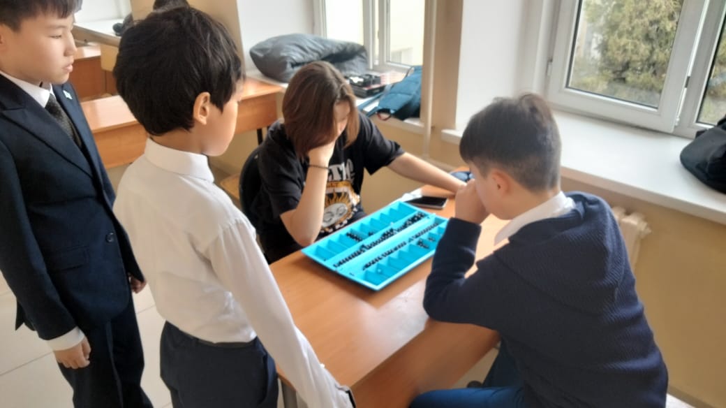 Жастар арасында жаппай өріс алып, кеңінен насихатталып жатқан ұлттық ойындардың бірі- «Тоғызқұмалақ» ойыны.«Қойшының алгебрасы» деп те айтылатын аталмыш ойын түрі негізінде ақыл-ойды дамытып, балалардың интеллектуалдық қабілетін арттыруға, ойын жинақтауға, сондай-ақ сабырлы, ұстамды болуға көп ықпал етеді. Міне, осы мәселелерді басшылыққа ала отырып, бүгін мектебімізде аталмыш ойын түрінен турнир ұйымдастырылды. 5 пен 6 және 7-8 сынып оқушылары арасында өткізілген сайыста оқушылар өзара бақтарын сынасып, қаншалықты мықты екендіктерін көрсетуге тырысты. Нәтижесінде 5-6 сынып оқушылары арасында 1-орынды Еңбек Аяла (5 «Ә» сыныбы), 2-орынды Муапық Айзада (6 «Б» сынып), 3-орынға Бектембаева Алина (5 «Ә» сыныбы») ие болса, 7-8 сынып оқушылары арасында 1-орынды Інібай Мерей (7 «Б» сыныбы), 2-орынды Ақпейіс Нұртөре (8 «Ә» сыныбы), ал 3-орынға Асқар Бексұлтан (7 «В» сыныбы) жайғасты. Осылайша бүгінгі турнир өз мәресіне жетіп, ең үздіктері анықталды.