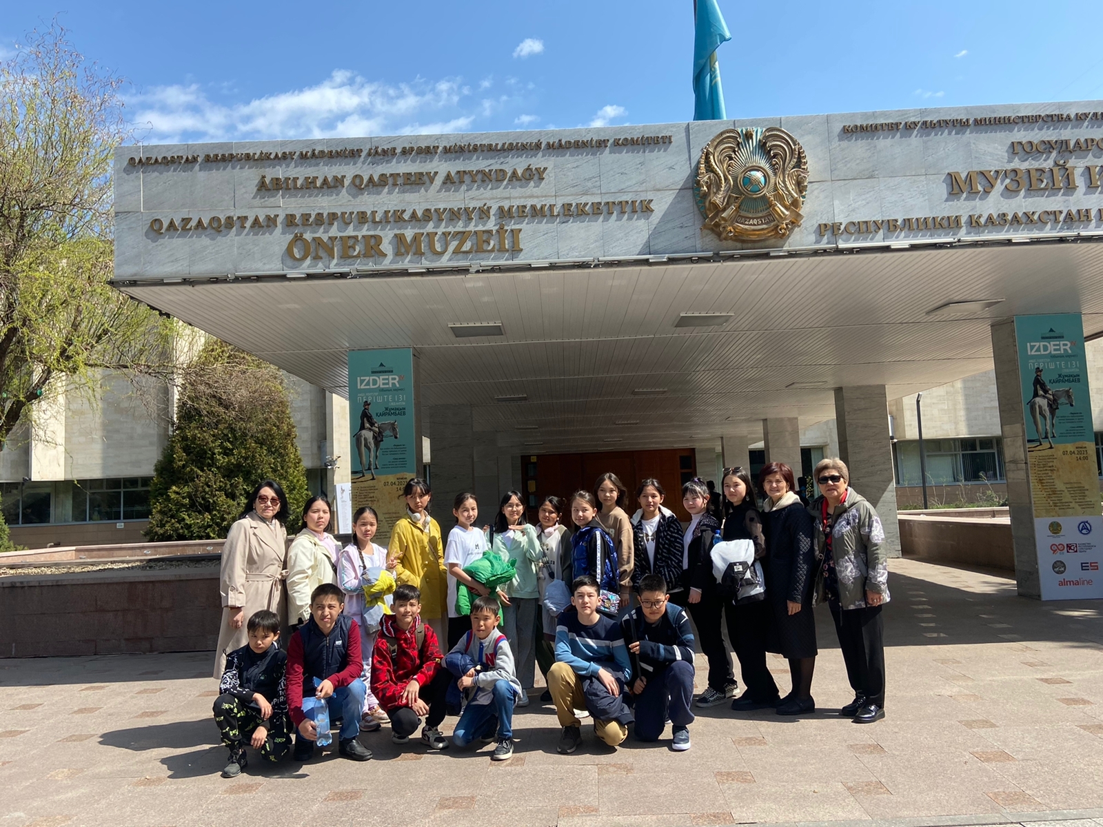 Өткен сенбі күні эстетикалық пәндер бірлестігінің онкүндігі аясында бірлестік мұғалімдері оқушылармен бірге Қастеев музейіне саяхаттап қайтты. Шет елдік және қазақстандық танымал суретшілердің туындыларын тамашалаған оқушылар нағыз бейнелеу өнерінің құдіреті мен сырына үңіліп, көп нәрсені аңғарып қайтты. Жалпы мұражайларды аралату, өнер орталықтарына апару балаларға оң әсер етіп, бойларында өнерге деген сүйіспеншіліктері мен қызығушылықтарын қалыптастыруға болады. Эстетикалық пәндер бірлестігінің мұғалімдері осы мәселелерді ескере отырып, әрі демалыс күндерін пайдалы етіп өткізу мақсатында өнер музейін аралатып қайтуды жоспарлаған болатын. Нәтижесінде оқушылар барғандарына қуанып, осындай саяхатты ұйымдастырған апайларына риза болып, рахметтерін айтып жатты.