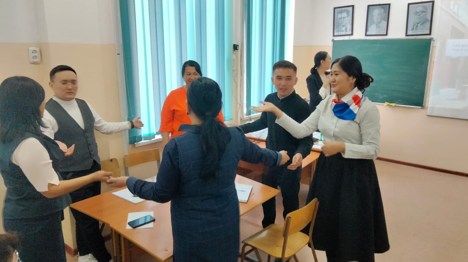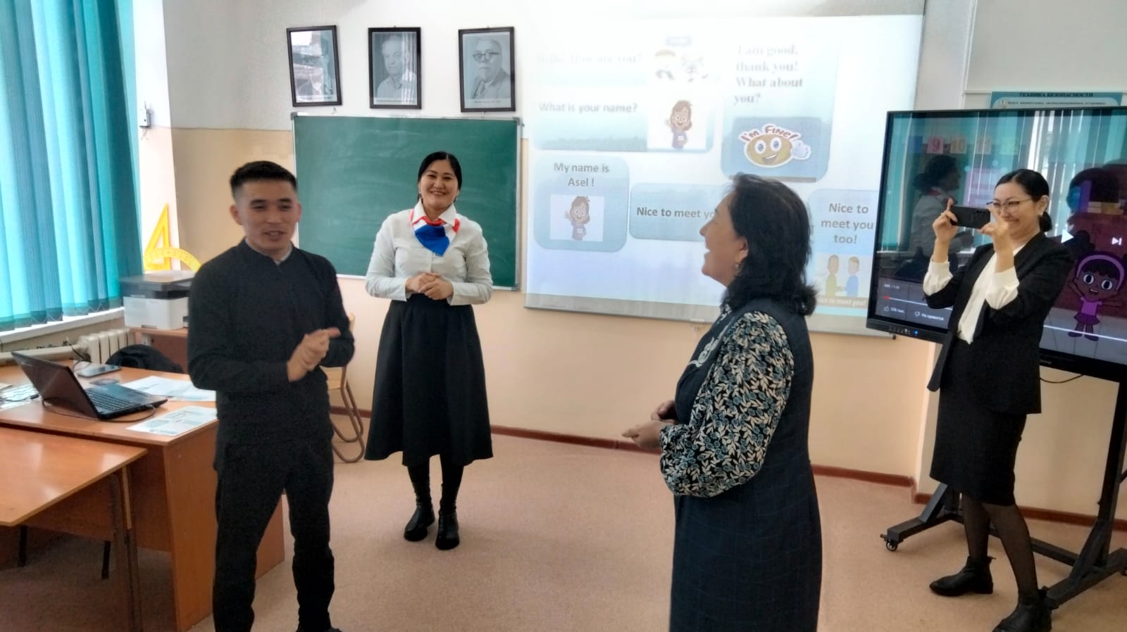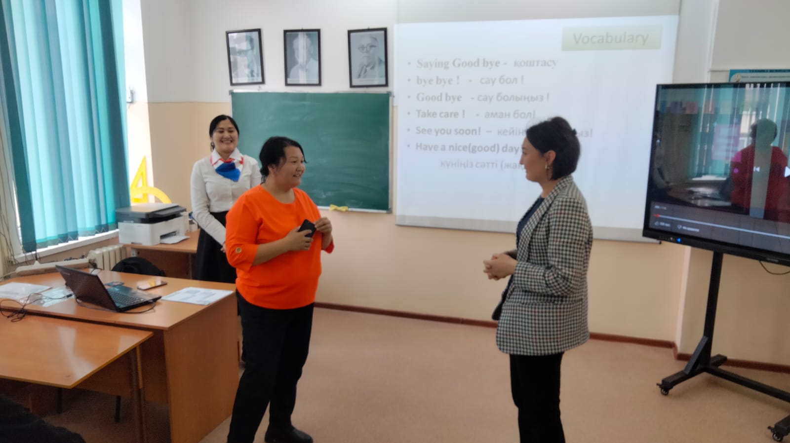 Бүгін ағылшын тілі пәні бірлестігінің онкүндігі аясында мұғалімдерге арналған сабақ өтті. «Ағылшын тілін үйренуді бастайық» деген тақырыпта өткен сабақты пән мұғалімдері Айгерім Мекзам мен Надырова Назым жүргізіп, мұғалімдерге ағылшын тілінің бастапқы сатысындағы ауызшы сөйлесуді үйретті. Топ-топқа бөлініп, сөздіктермен жұмыс істеп, мұғалімдер бір-бірімен ағылшынша сәлем беріп, танысып, жақсы тілектер айтып, көңілді бір ахуалда ұйымдастырылды. Ойындар да болып, бүгінгі туылған күн иесі Інжу Серботаева апайды ортаға шығарып, ағылшын тілінде құттықтауларын айтып жатты. Сөйтіп аталмыш сабақ мұғалімдердің көңілінен шығып, кейбір ұмыт болған сөздерді тағы бір ой елегінен өткізіп, білімдерін біраз толықтырып қайтты. Белсенді болған мұғалімдерге жұлдызшалар таратылды.