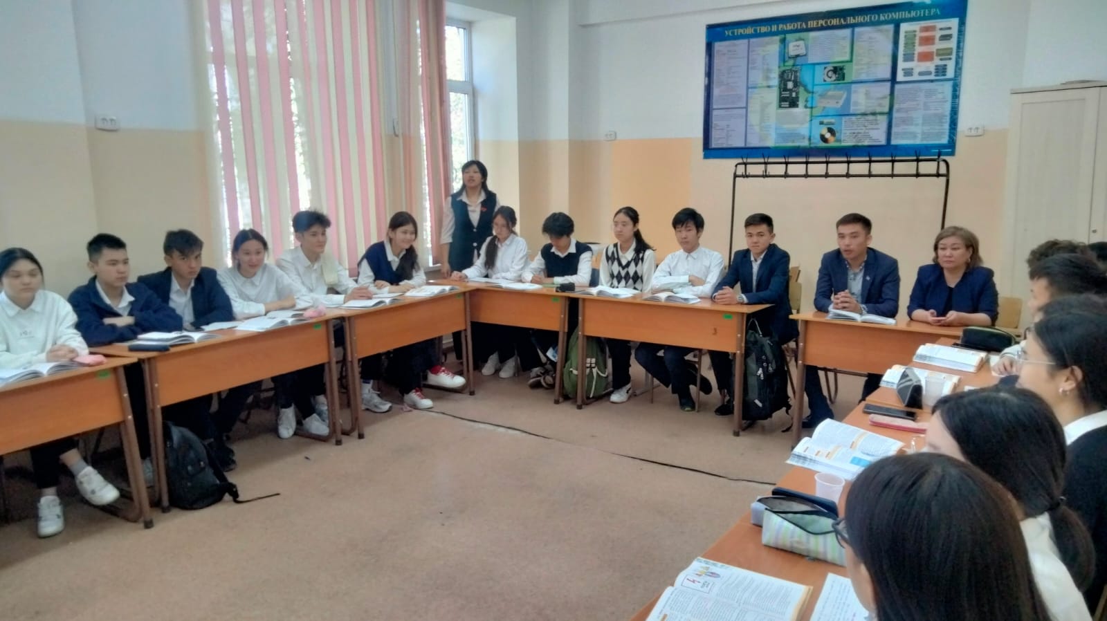 Бүгін мектебімізде тарих пәні бірлестігінің ұйытқы болуымен «Ерлік – елге мұра» тақырыбында дөңгелек үстел ұйымдастырылды. 9 «Б» сыныбының оқушылары арасында ұйымдастырылып отырған дөңгелек үстелді пән мұғалімі Рақымбекова Нұршат Қаһарманқызы жүргізіп, аталмыш іс-шара алдағы келе жатқан Ұлы Жеңіс күніне орайластырып өтіп жатқандығын айтып кетті. Оқушыларға алдымен бейнефильм мен слайд көрсетіліп, сұрапыл соғысқа қатысты мәліметтерді және Қазақстанның ұлы жеңісті жақындатудағы ролі мен қаһарман жауынгерлер туралы ақпараттар берілді. Дөңгелек үстел барысында тақырыпқа байланысты оқушылар ойларымен бөлісіп, пікірлерін ортаға салды. Берілген сұрақтарға жауап беріп жатты. Іс-шара қорытындысында директордың тәрбие ісі жөніндегі орынбасарлары Кыпшакова Дариға апай мен Әлімжан Дархан Мұхитұлы аталмыш іс-шараның мән-маңызын айтып, ата-бабаларымыздың ұлы ерліктерін бүгінгі ұрпақ мәңгі жадында сақтап қалуы керек деген тұжырымға келді.