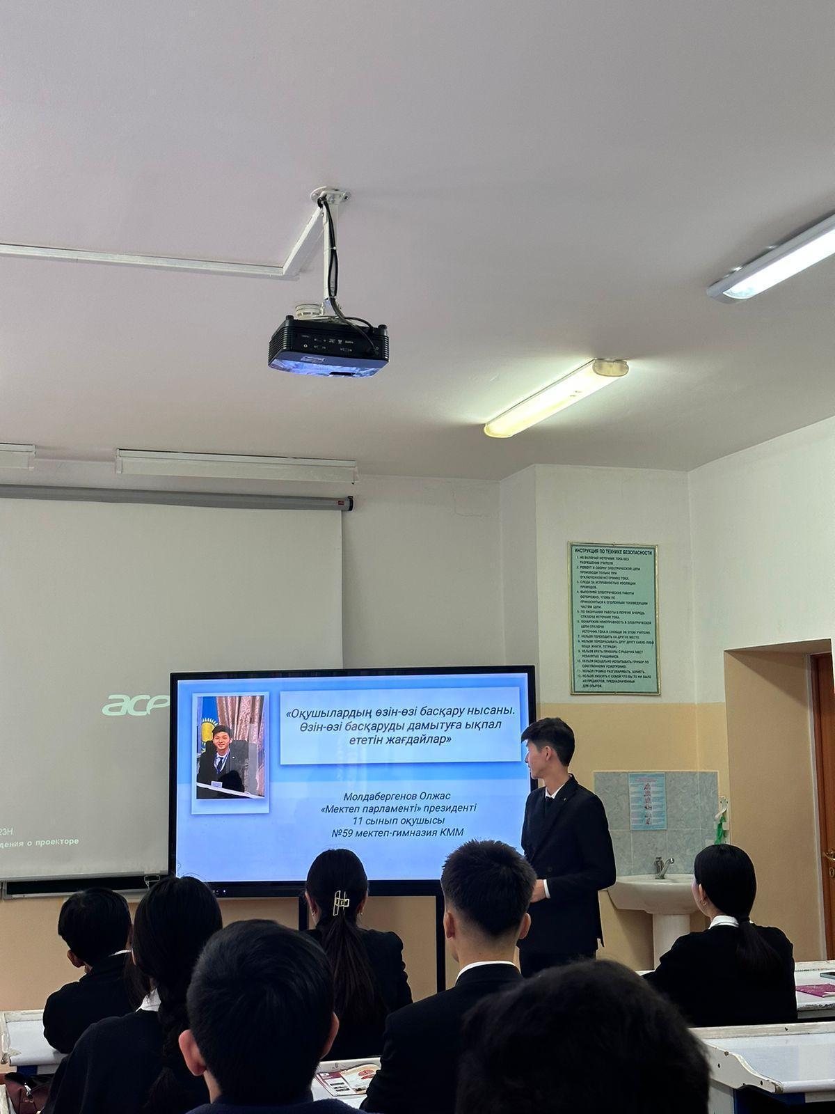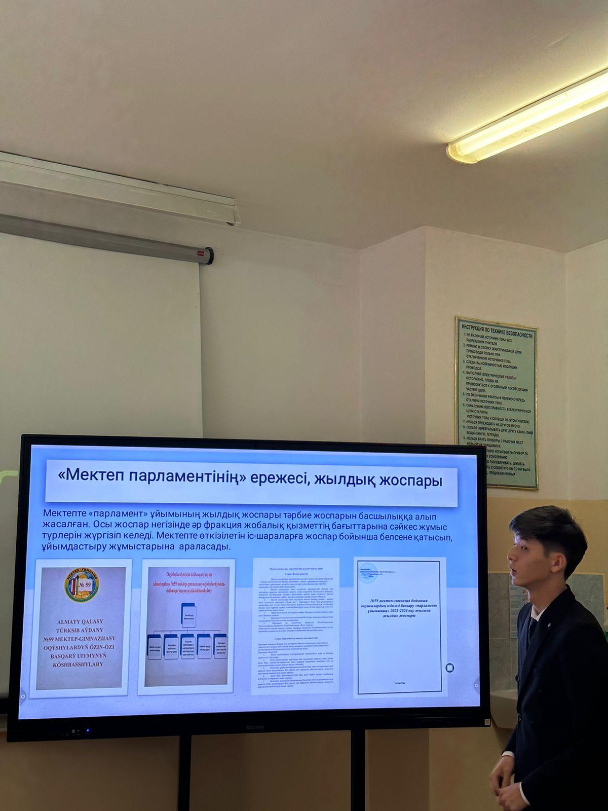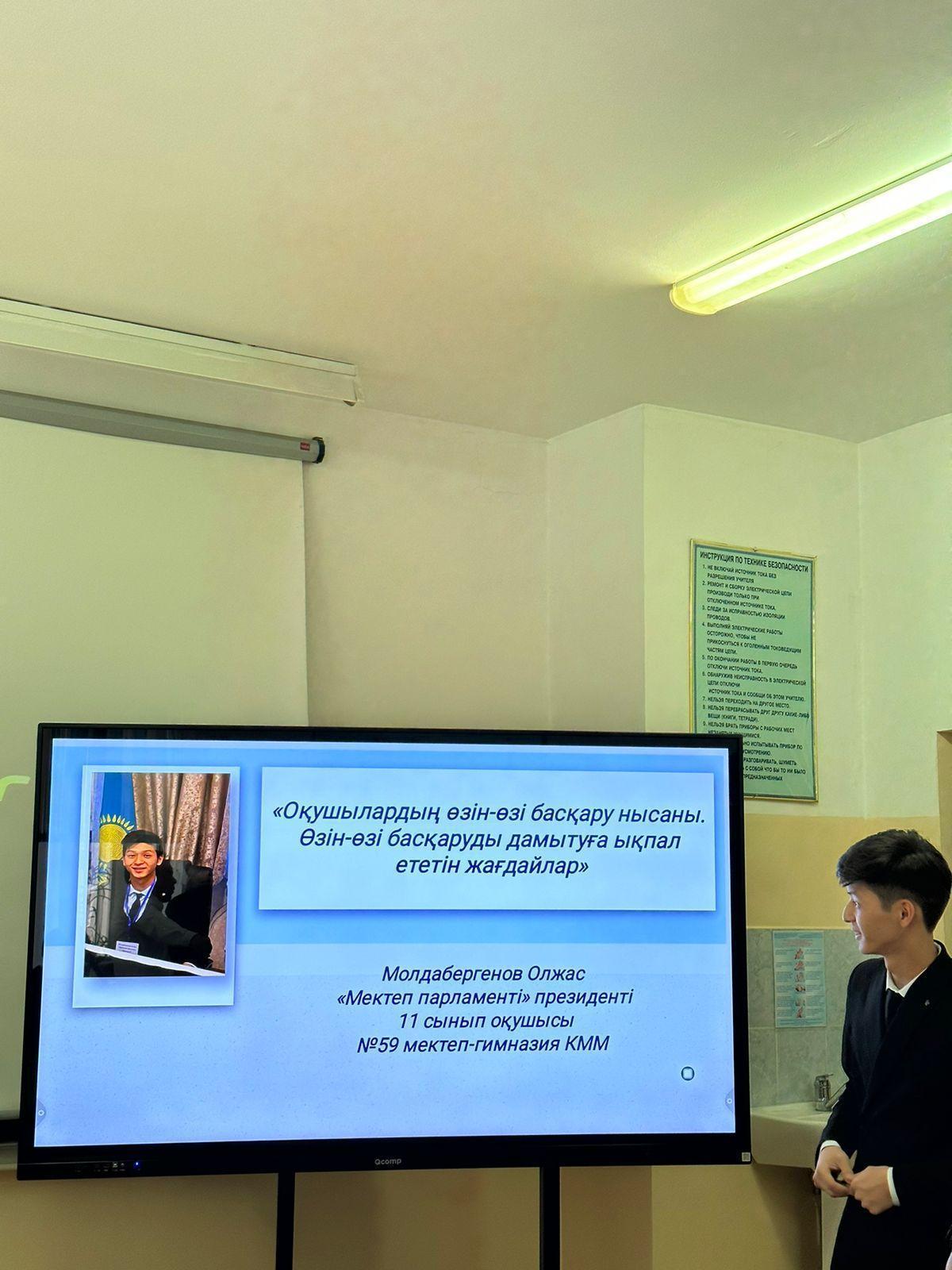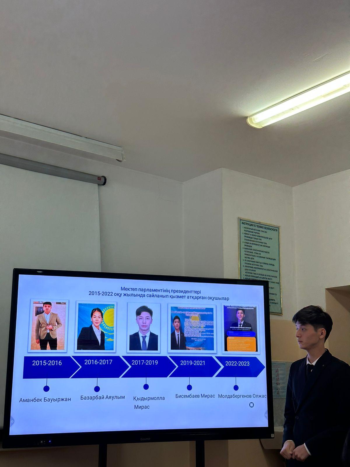 Мектеп және студенттік парламенттері көшбасшыларының қалалық слетінің мектепішілік кезеңі өткізілді. Слетке мектеп парламенті президенті 11 сынып оқушысы Молдабергенов Олжас қатысып,"Оқушылардың өзі-өзі басқару нысаны. Өзін-өзі басқаруға ықпал ететін жағдайлар" тақырыбында жұмысын қорғады. Жетекшісі ДТЖЖО Кыпшакова Дариха.#алматыдарыны