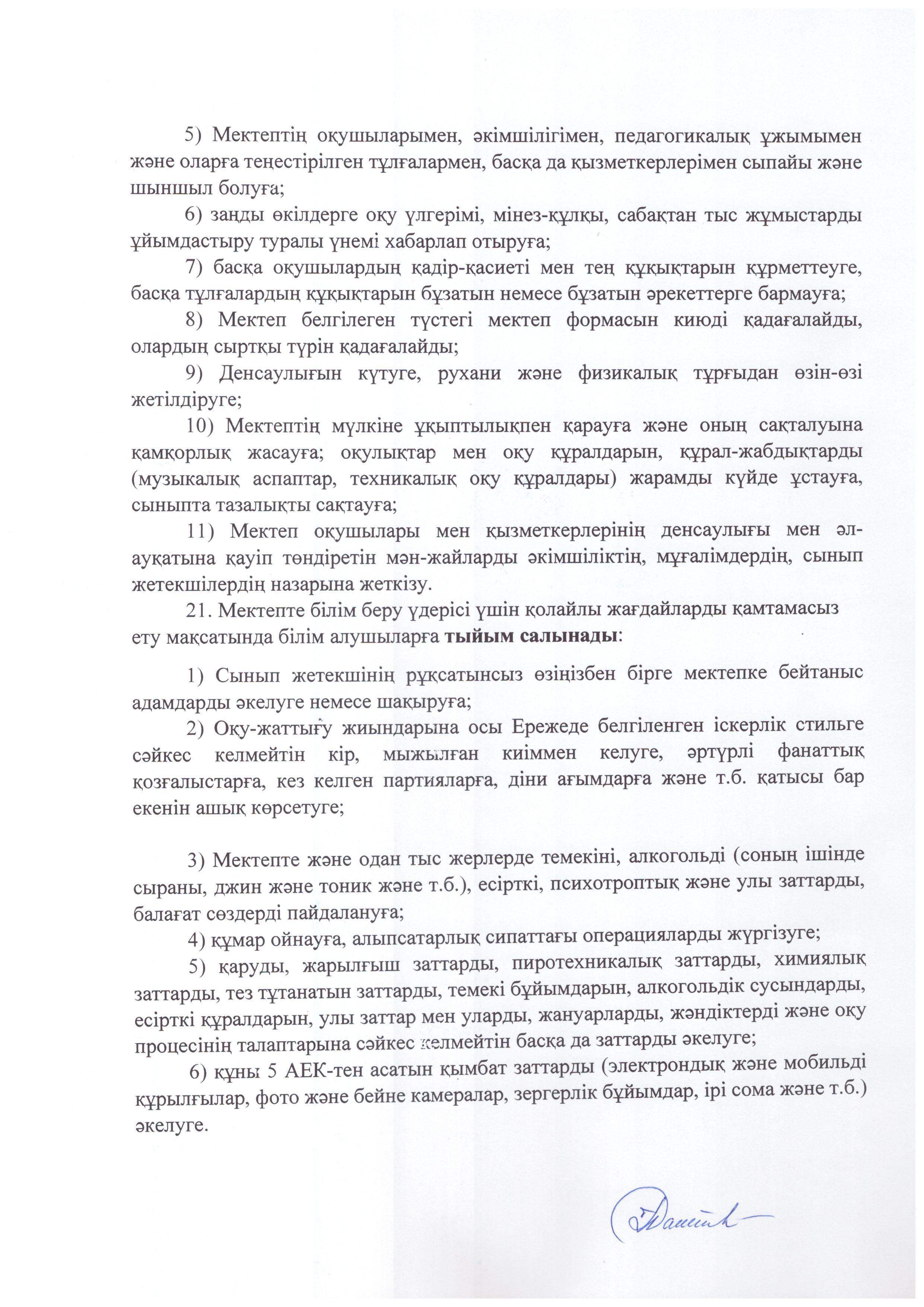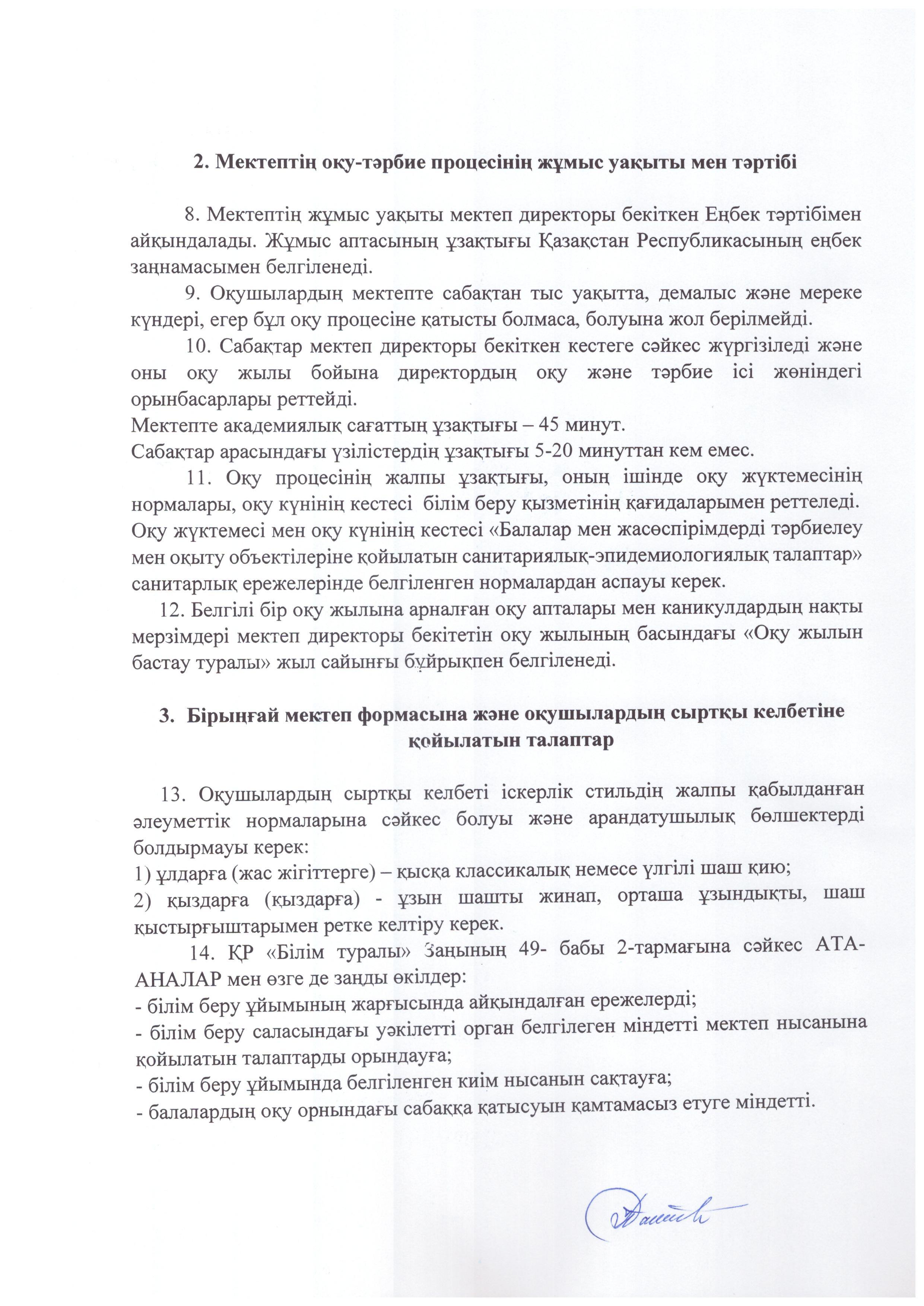 » Мектептің ішкі тәртіп ережесі