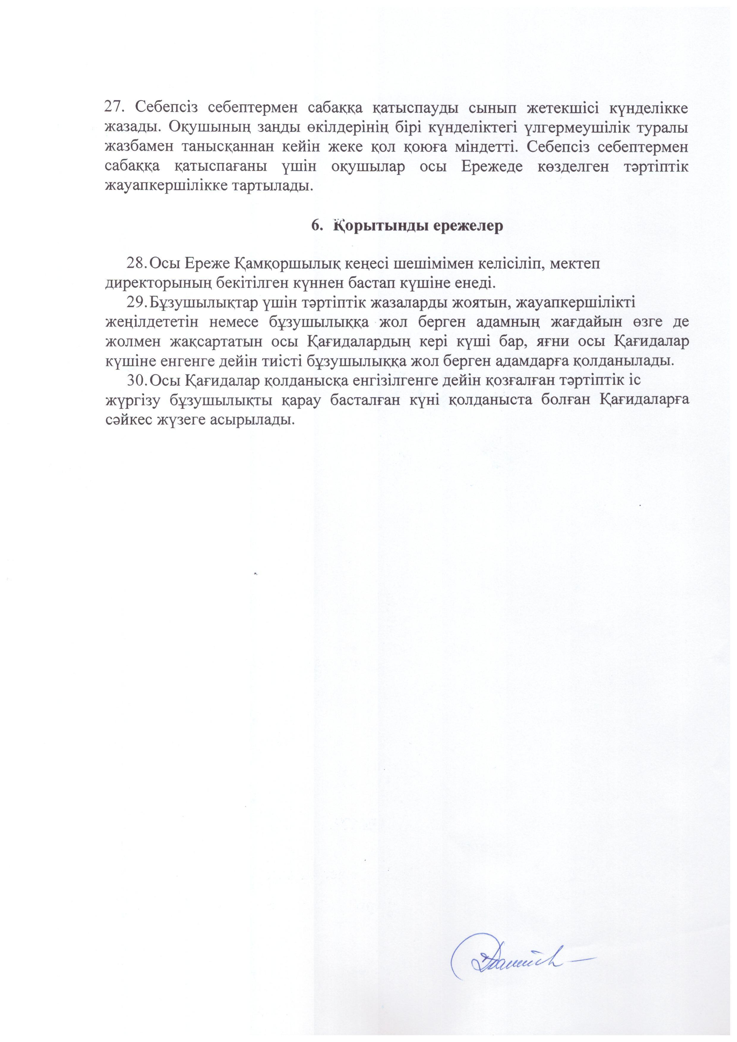 Мектептің ішкі тәртіп ережесі