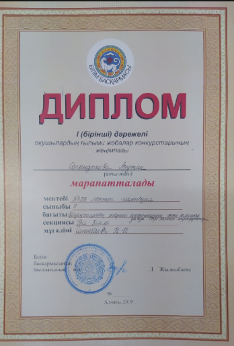 Оқушылар ғылыми жобасының жүлдегерлері.