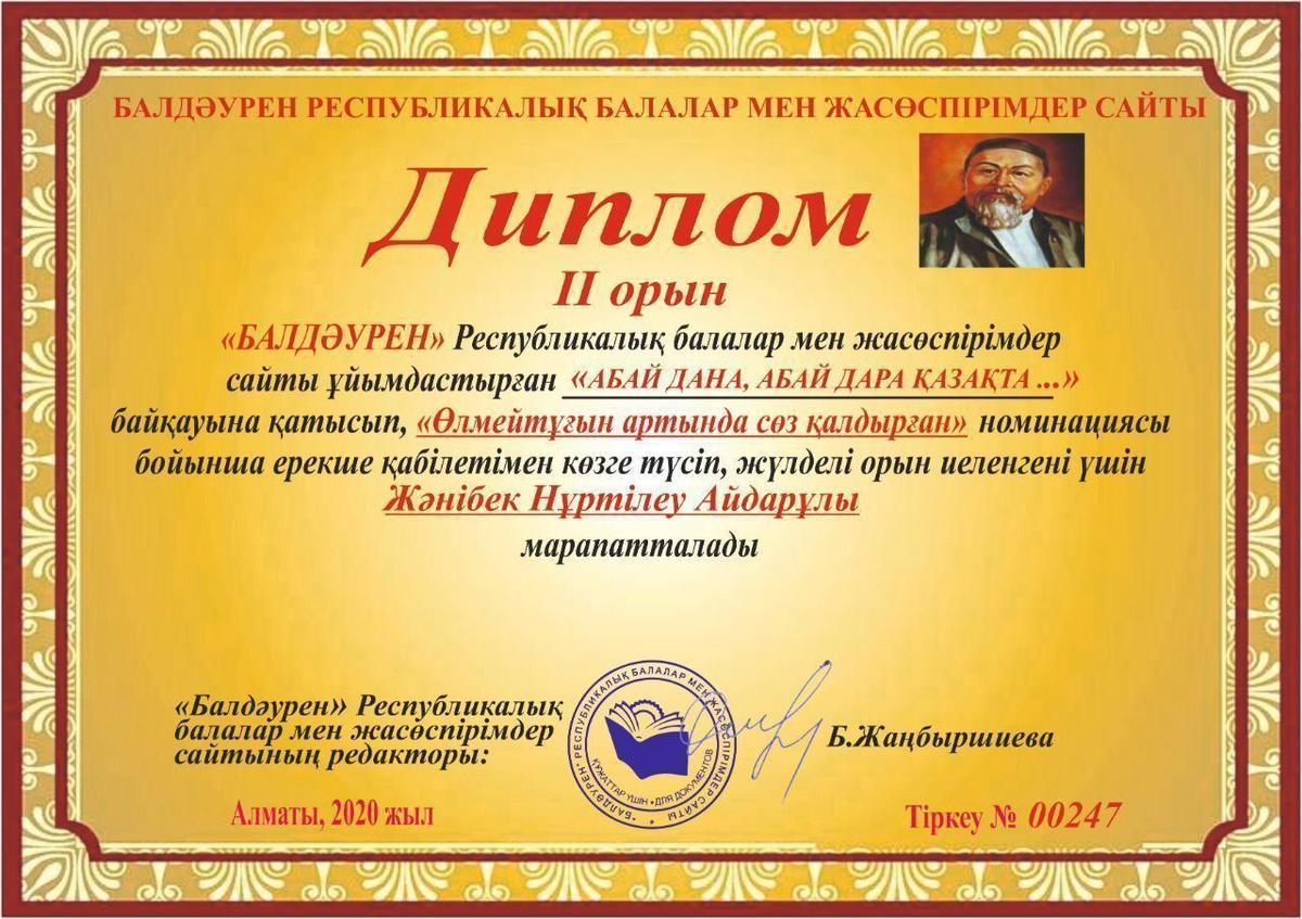 Оқушылар мен ұстаздардың бірге қашықтықтан өткізілген байқаулар марапаттары.