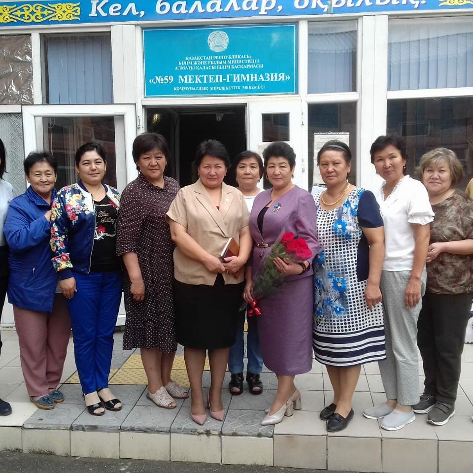 №59 мектеп-гимназиясының қазақ тілі мен әдебиеті пәні мұғалімі Жабаева Гүлбаршын Мырзабекқызы қалалық білім беру басқармасының шешімімен «Ы.Алтынсарин атындағы төсбелгімен » марапатталды. Құтты болсын.