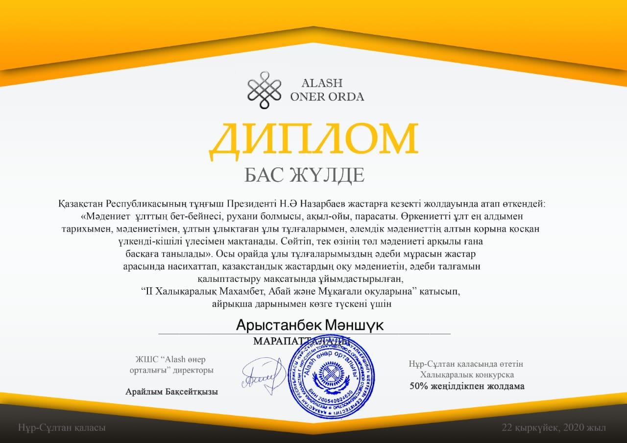 II Халықаралық Махамбет, Абай және Мұқағали оқуларынан Арыстанбек Мәншүк- Абай оқуларынан бас жүлде, Ыбрай Арай Мұқағали оқуларынан бас жүлде құттықтаймыз!