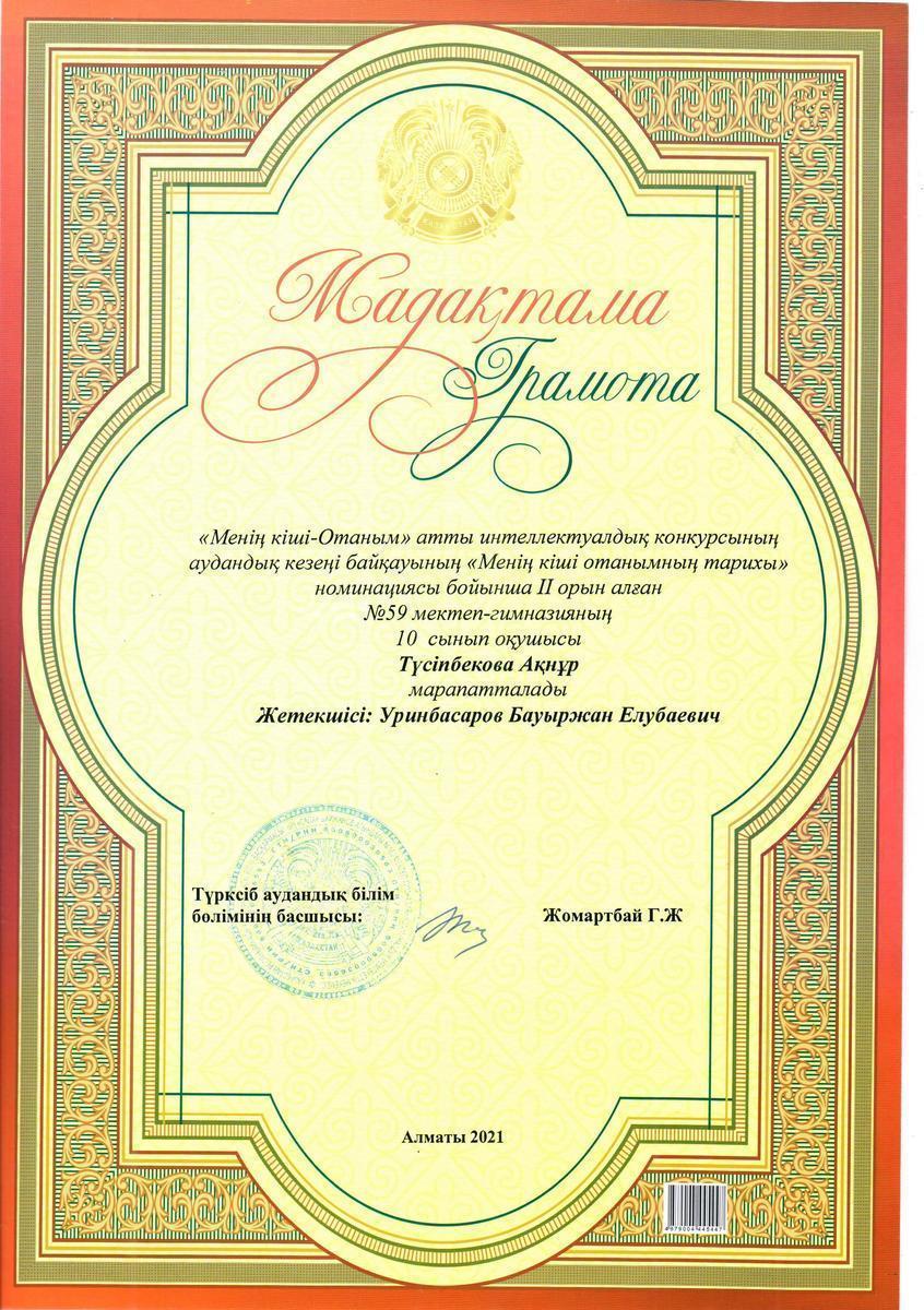 05 ноябрь 2021 0 1 2 3 4 5 Құттықтаймыз ! "Менің кіші- Отаным" атты интелектуальдық сайысынан мектеп оқушылары жүлделі орындардан көрінді.