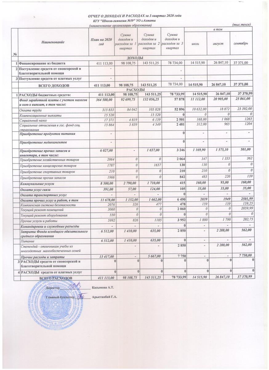 » Отчет о доходах и расходах за 3 квартал 2020 года