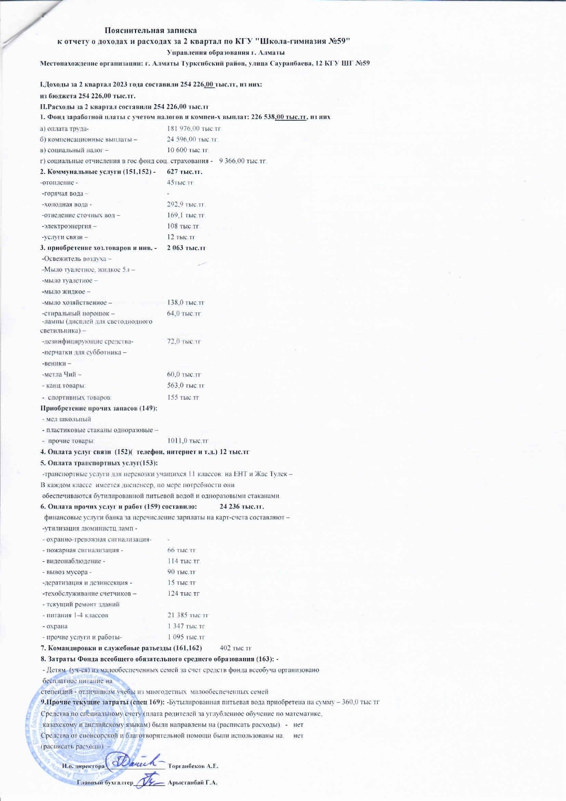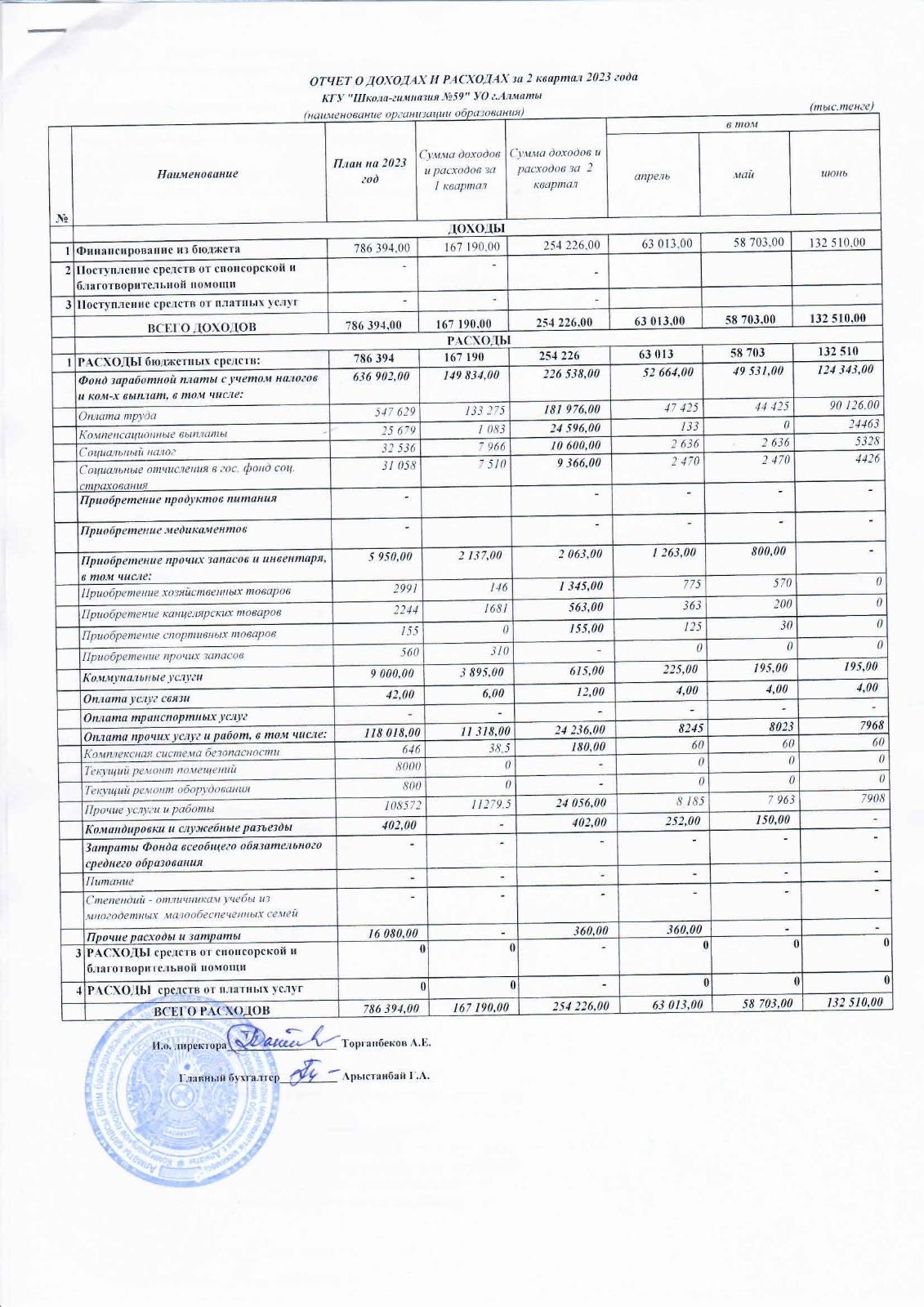 » 2-ШІ КВАРТАЛҒА АРНАЛҒАН КІРІС ПЕН ШЫҒЫС ЕСЕБІ